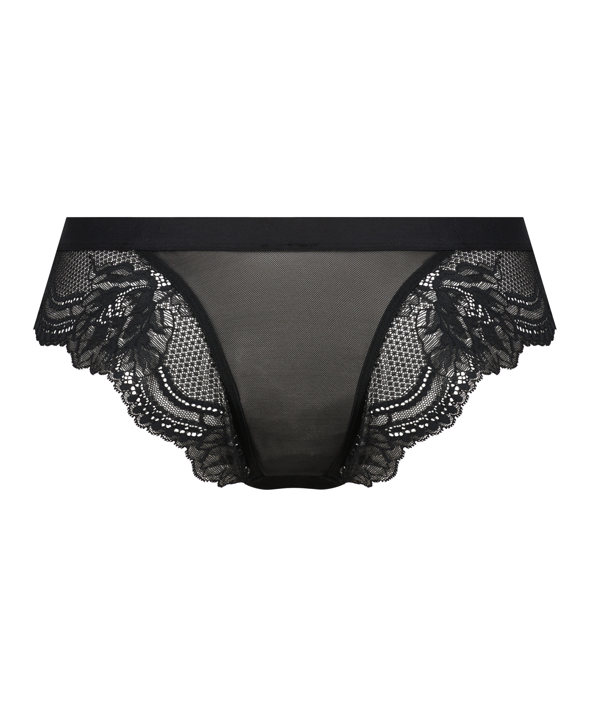 Feel sexy with this brazilian! With an all-over semi-transparent look with lots of romantic lace and strappy details. Find the matching bra!