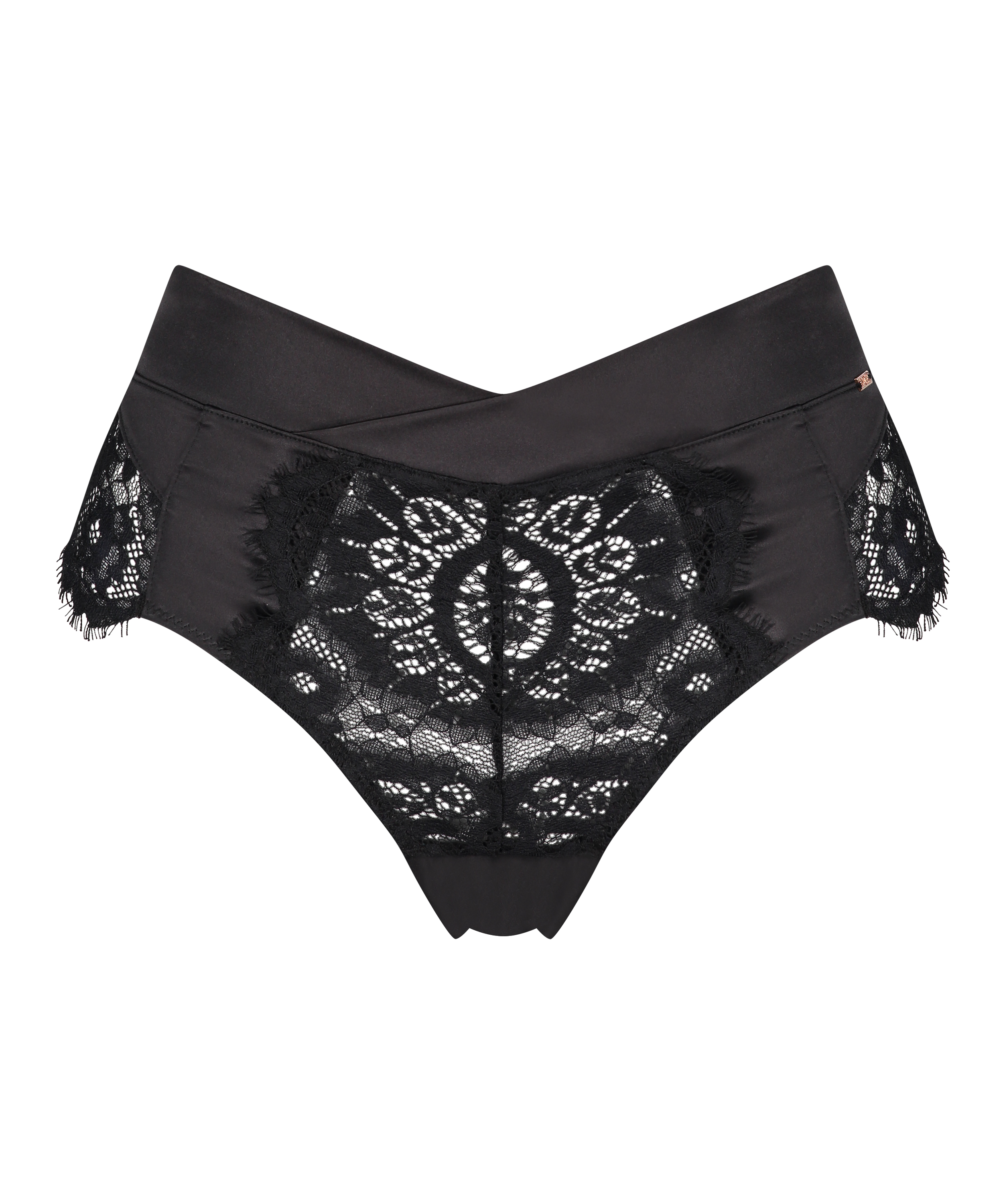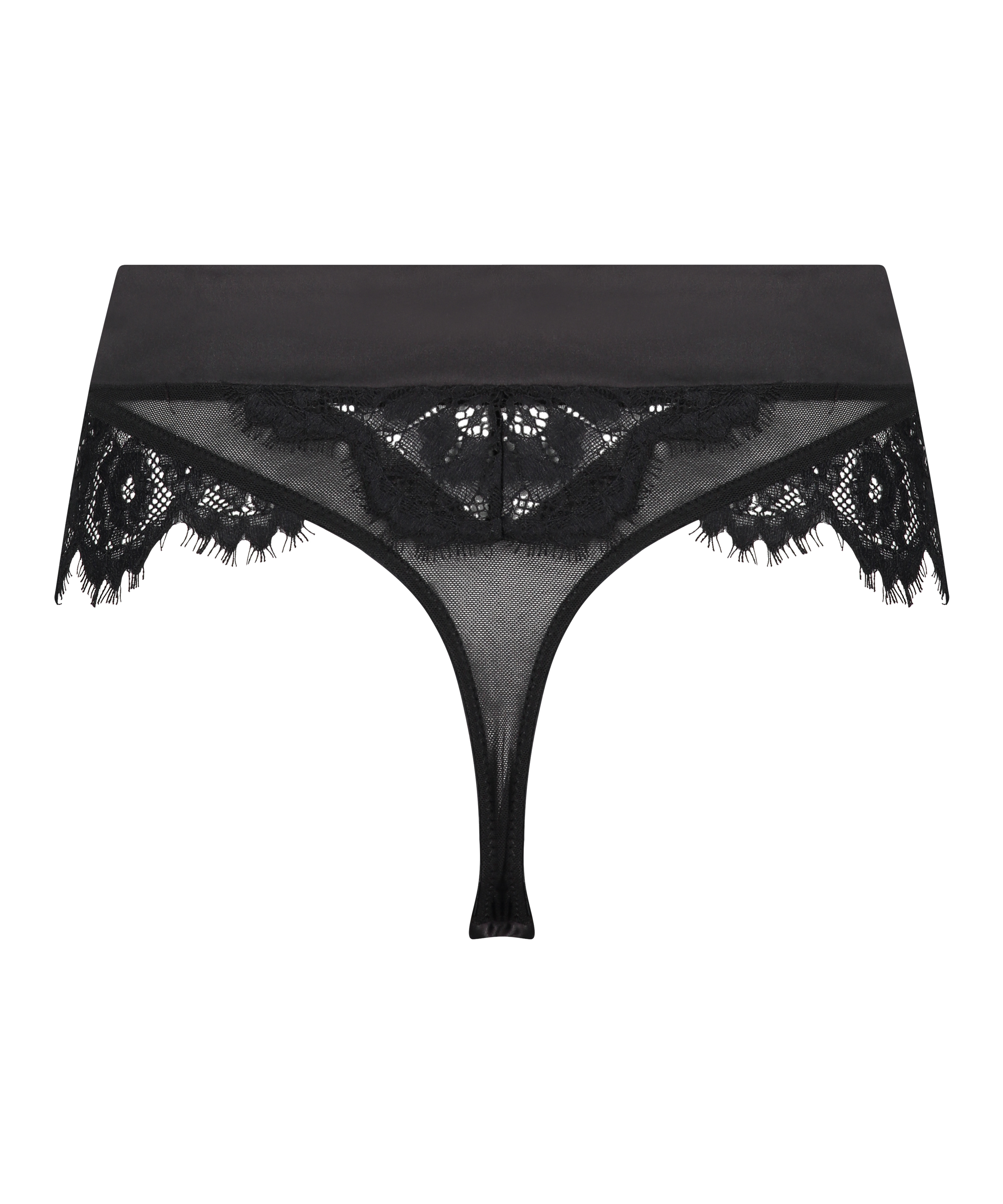 Feel comfortable in this thong! The thong is high cut, so the focus lies on your legs. The thong is made almost entirely of lace. Combine with matching items from the Noir Collection for a complete lingerie set!