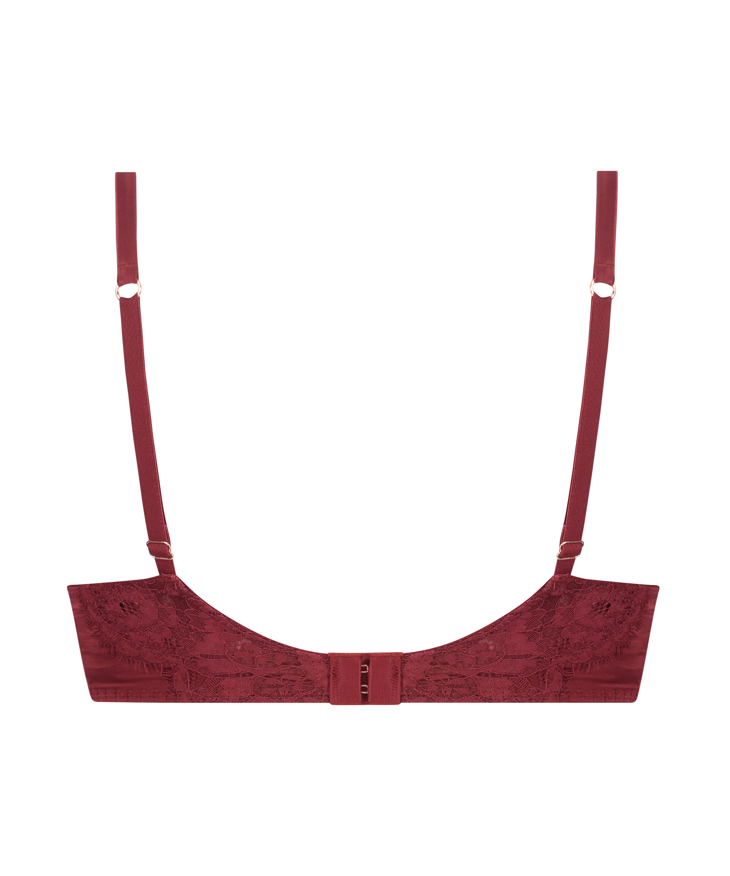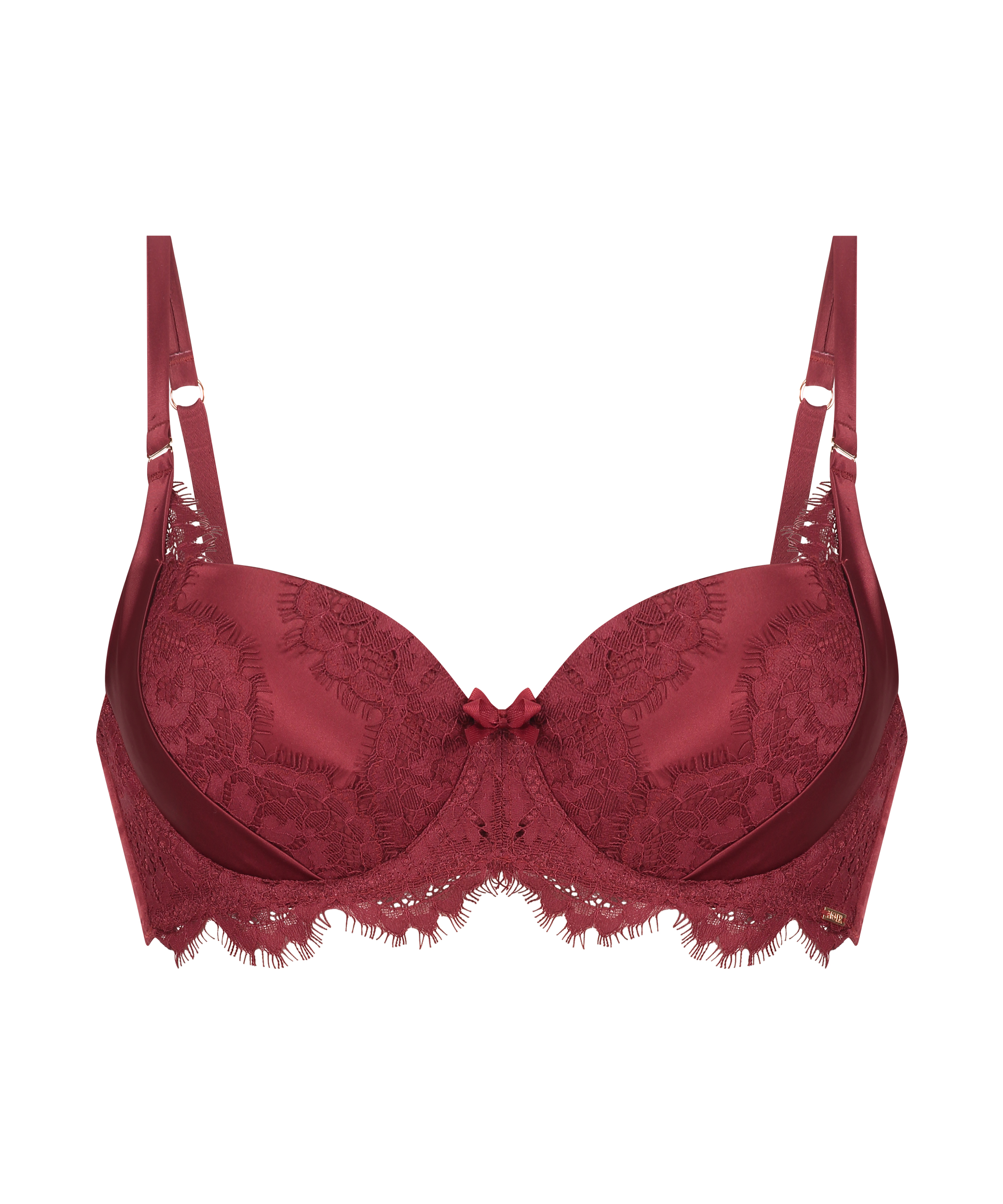 We just love this gorgeous bra! The bra has lace details and a small bow at the front. The shoulder straps are adjustable, so you can shorten or lengthen them to fit. Combine with matching items from the Noir Collection for a complete lingerie set!