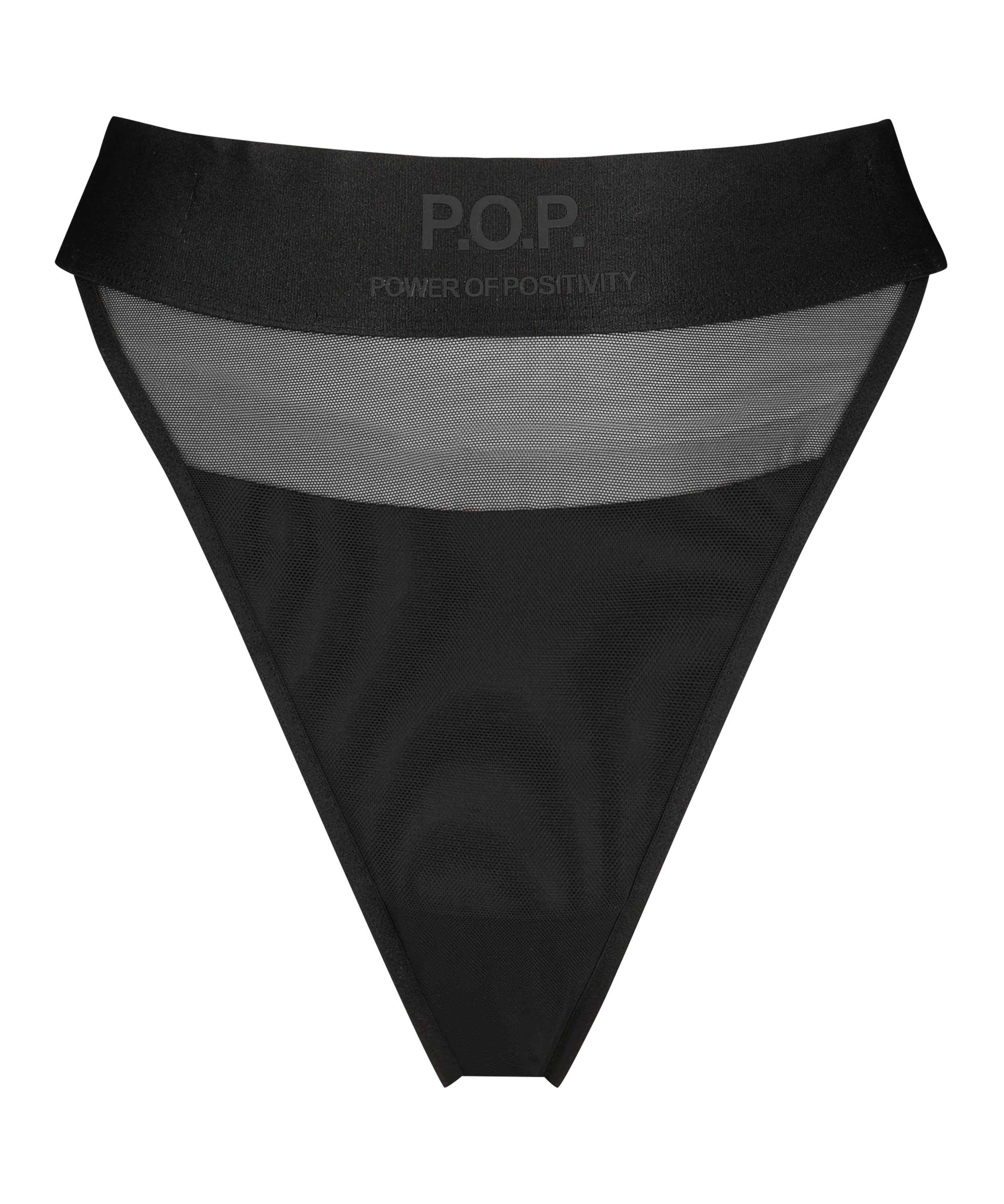 This super-soft thong is partly Mesh which gives a see-through effect. The thong has a luxurious shiny satin waist band with logo and is so comfortable that you forget that you are wearing it. Pair this awesome thong with the matching bralette! Part of the P.O.P. 'Power of Positivity' collection. An inspiring and energetic 'think positive' attitude, this collection embraces self-love, diversity and a conscious lifestyle.