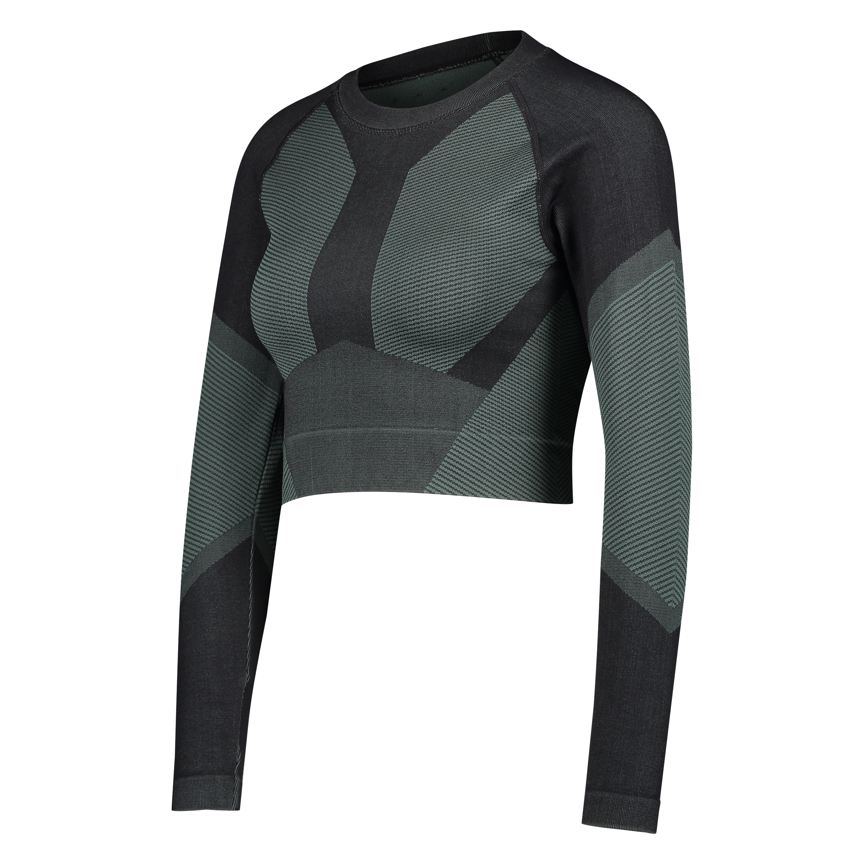 This seamless top completes your gym look! The top is made from an elastic fabric for a snug fit, perfect for a good workout. Combine with the matching sports bra and leggings for a complete set! Made of 55% recycled Polyamide.