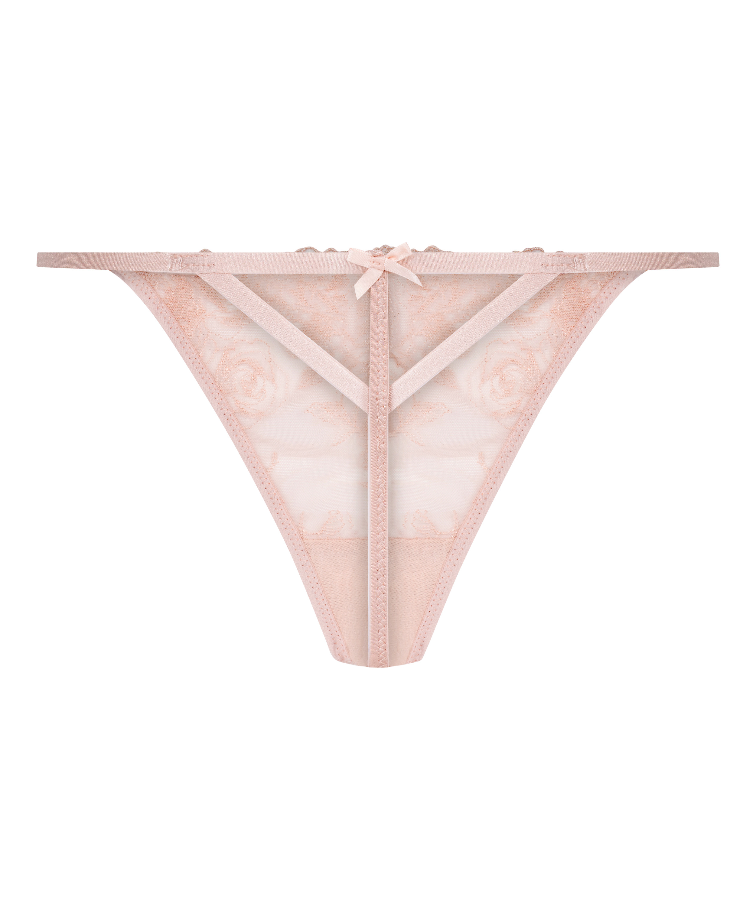 Flirty and feminine - this thong is designed to highlight your curves with a touch of romantic charm. Made from mesh, it features embroidered flowers that add texture. The high-cut leg elongates your silhouette, while the bows on each side bring a playful finish. Combine with the matching bra for a complete look.
