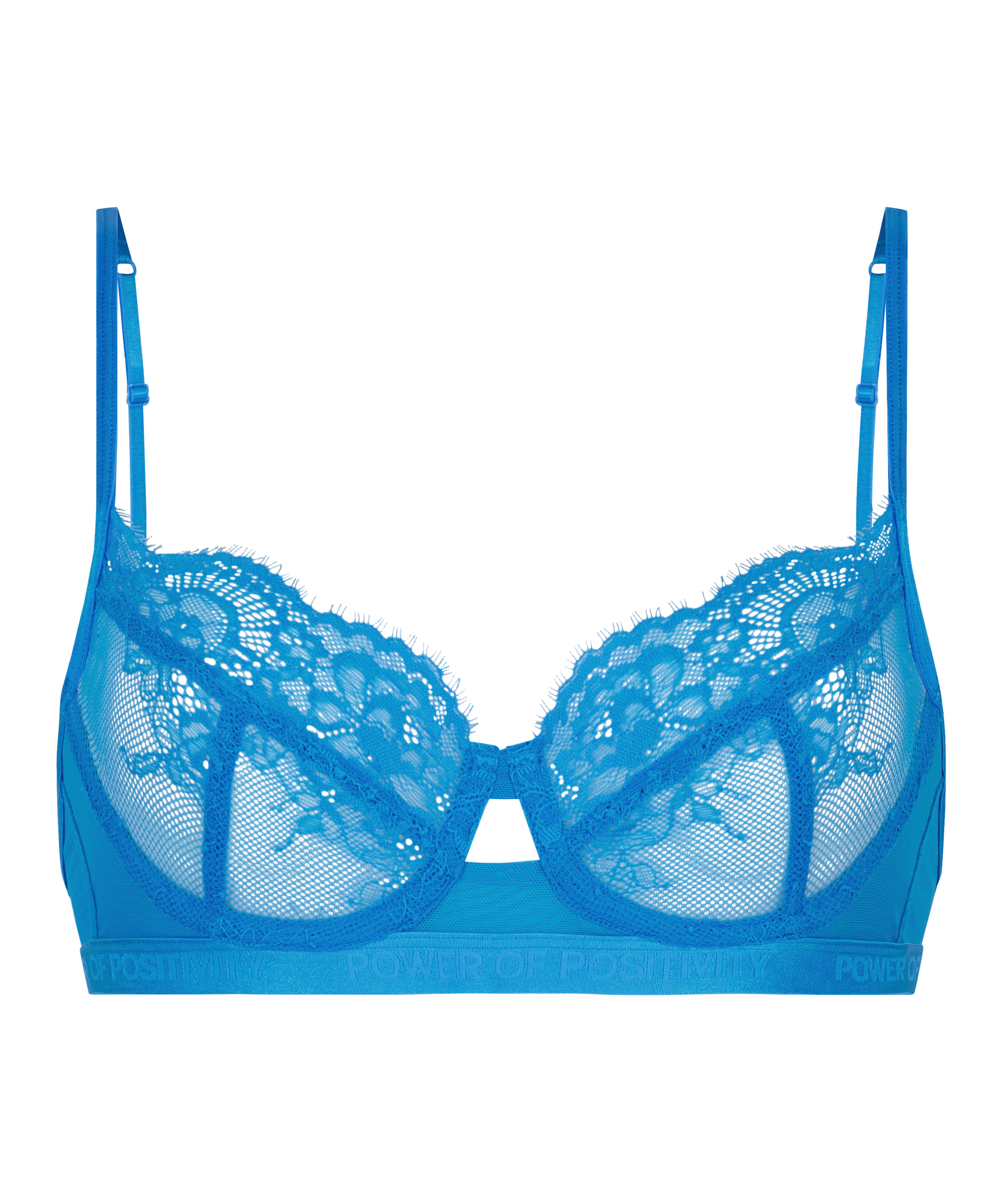 Feel fabulous in this bra! It is made of lace and mesh, and has adjustable shoulder straps. Combine with the matching items for a complete look! Part of our P.O.P. Power of Positivity Collection. An inspiring and energetic "think positive" attitude. Power Of Positivity embraces self-worth, diversity and a conscious lifestyle.