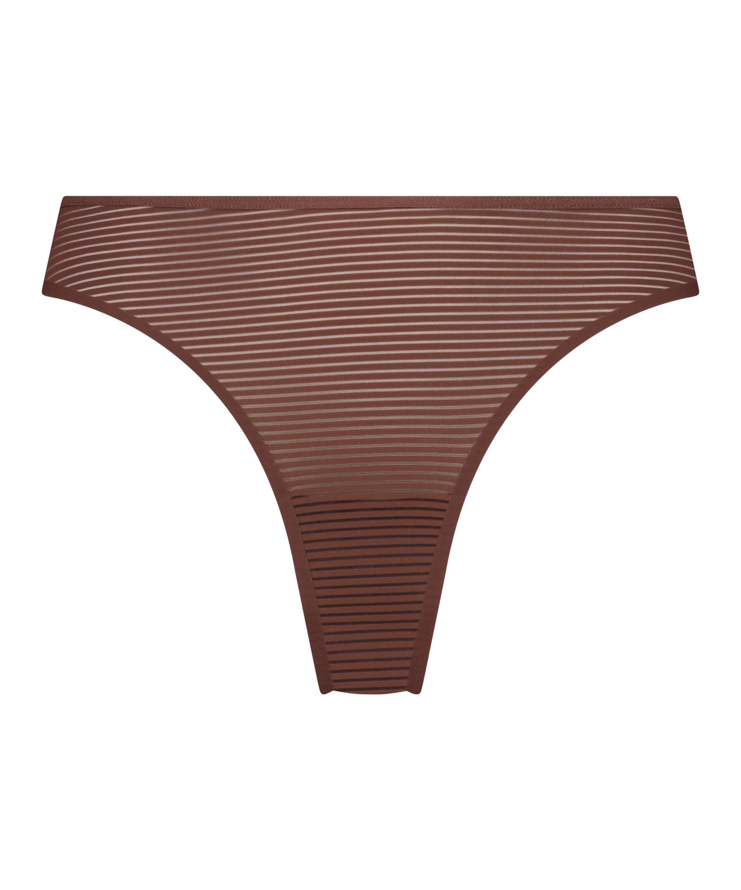 This thong features ultra-thin mesh fabric on the front. This thong will be a perfect fit under tight-fitting clothes. The fabric has striped details. Combine with a matching bra or bralette.