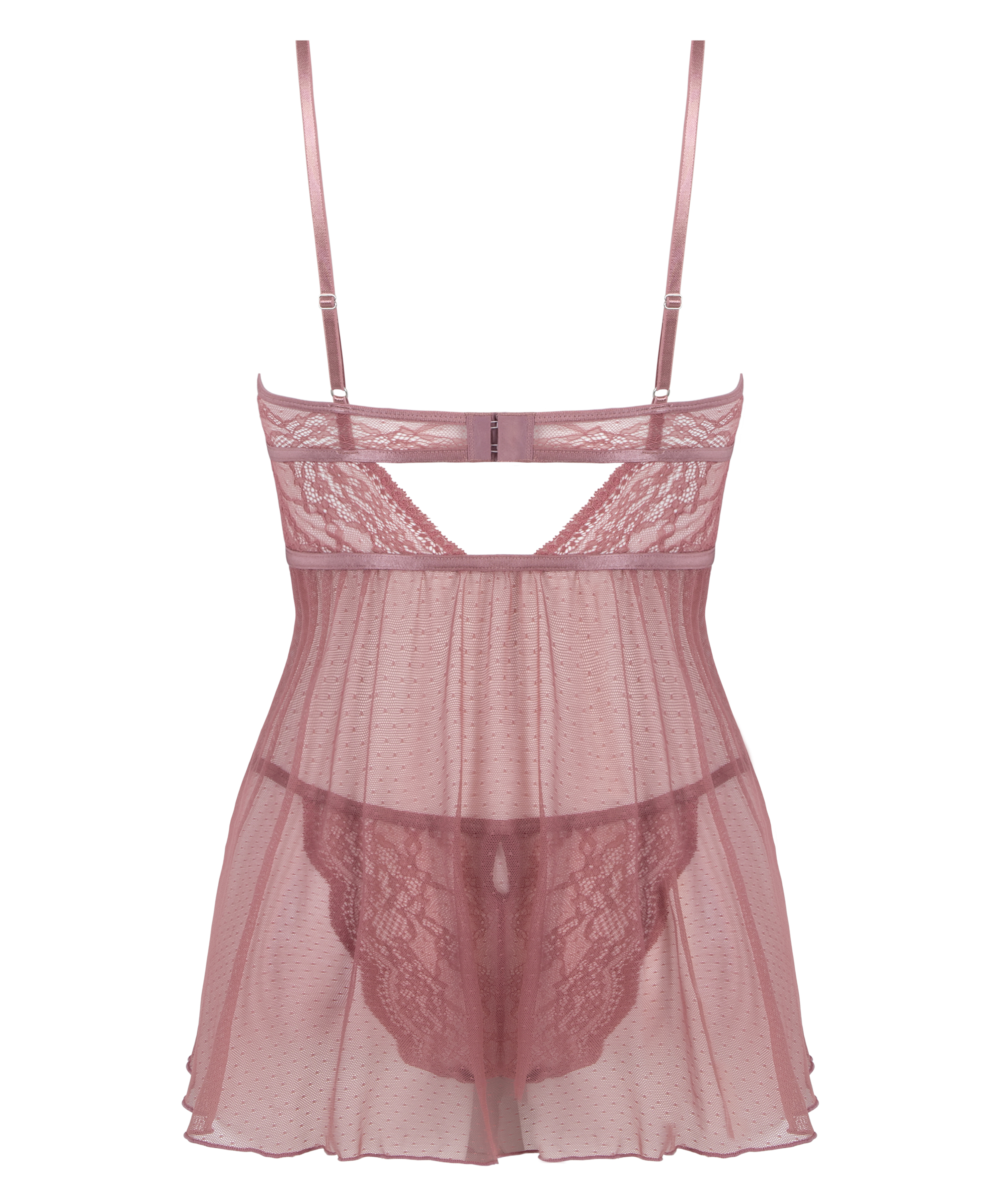 Feel sexy in this gorgeous baby doll! With a romantic all-over lace look and frontal and back boning for the best support, along with underwired cups. We can't forget about the matching brasilian in the set!
