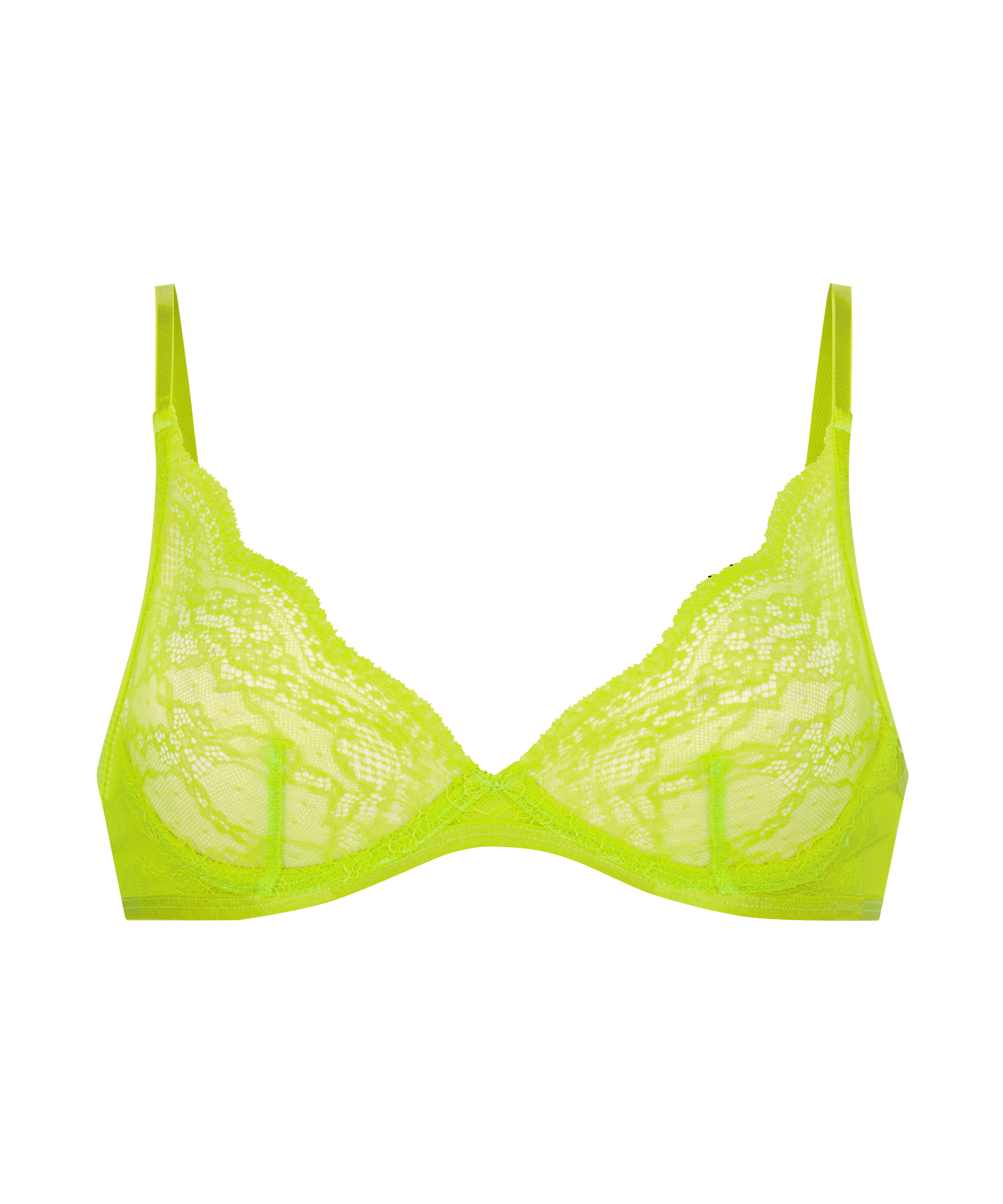 Shine in this beautiful bra! The bra is non-padded and underwired. The lashings of lace have a lovely interwoven pattern. Combine with matching knickers.