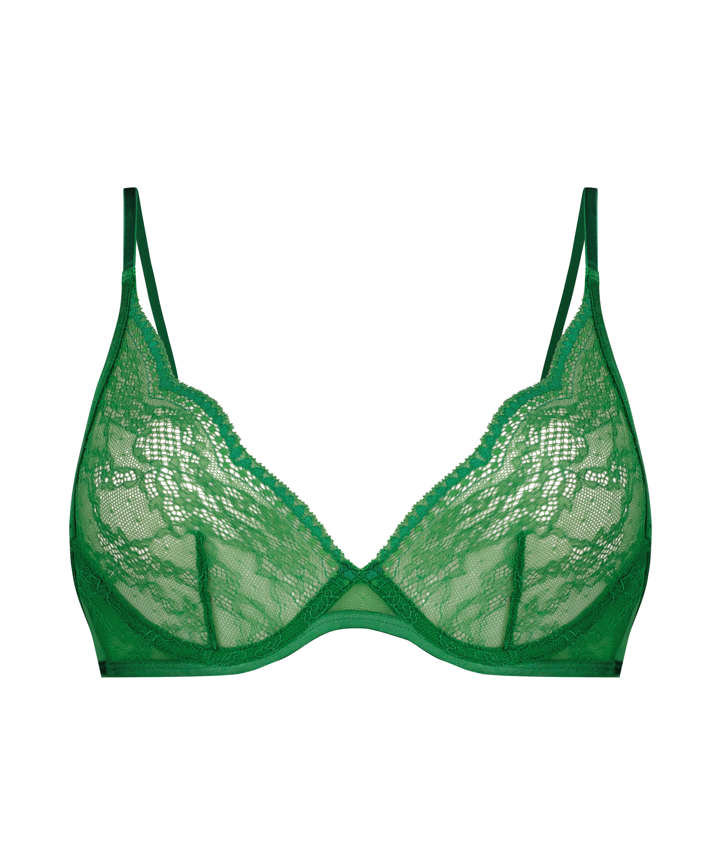 Shine in this beautiful bra! The bra is non-padded and underwired. The lashings of lace have a lovely interwoven pattern. Combine with matching knickers.