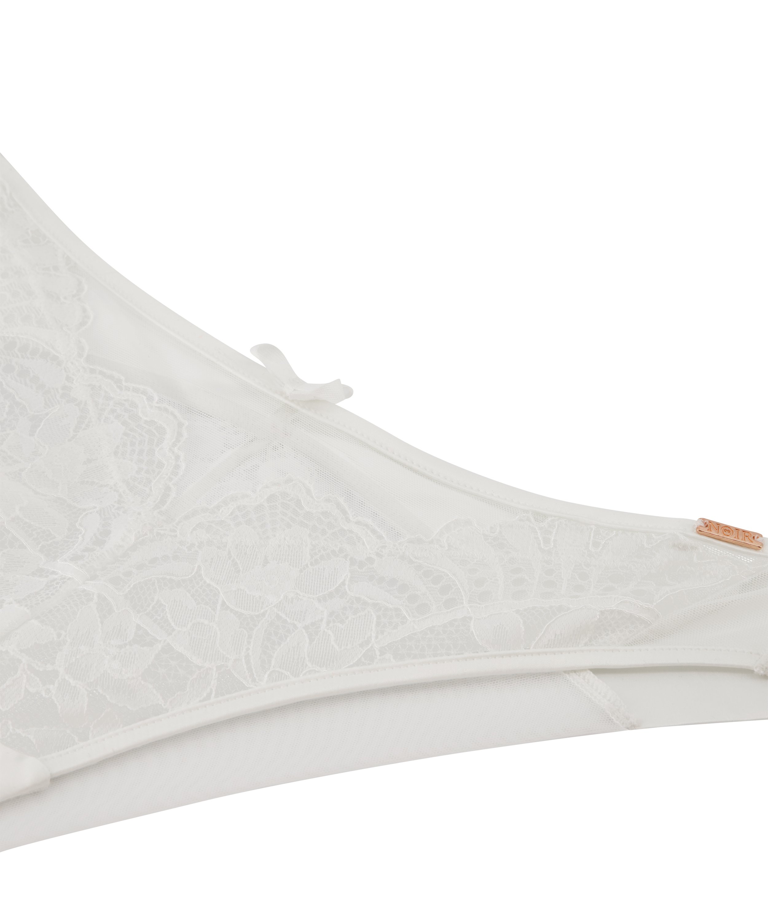 Treat yourself with our must-have Jamie lingerie set! Give your basics the day off with this stunning brazilian. Made with gorgeous mesh and lace fabrics, a cute bow on the front and a daring lace design on the back. Match with the Jamie set items for a complete look! Part of the Noir collection.