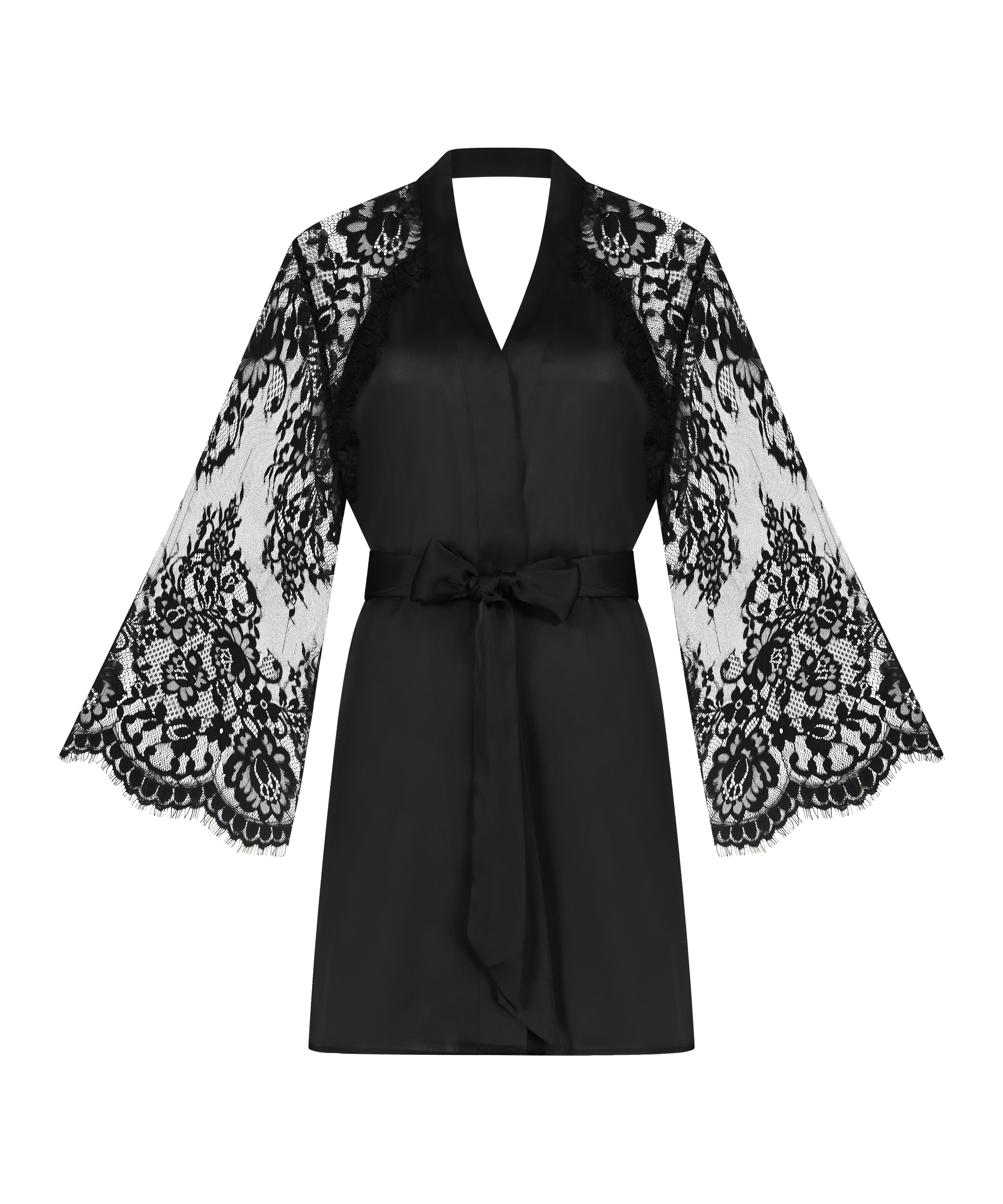 This kimono features a satin look and feel. The wide lace sleeves make your outfit super sexy: a real must-have. Combine with a pretty slip dress for a complete look. From our Private collection.