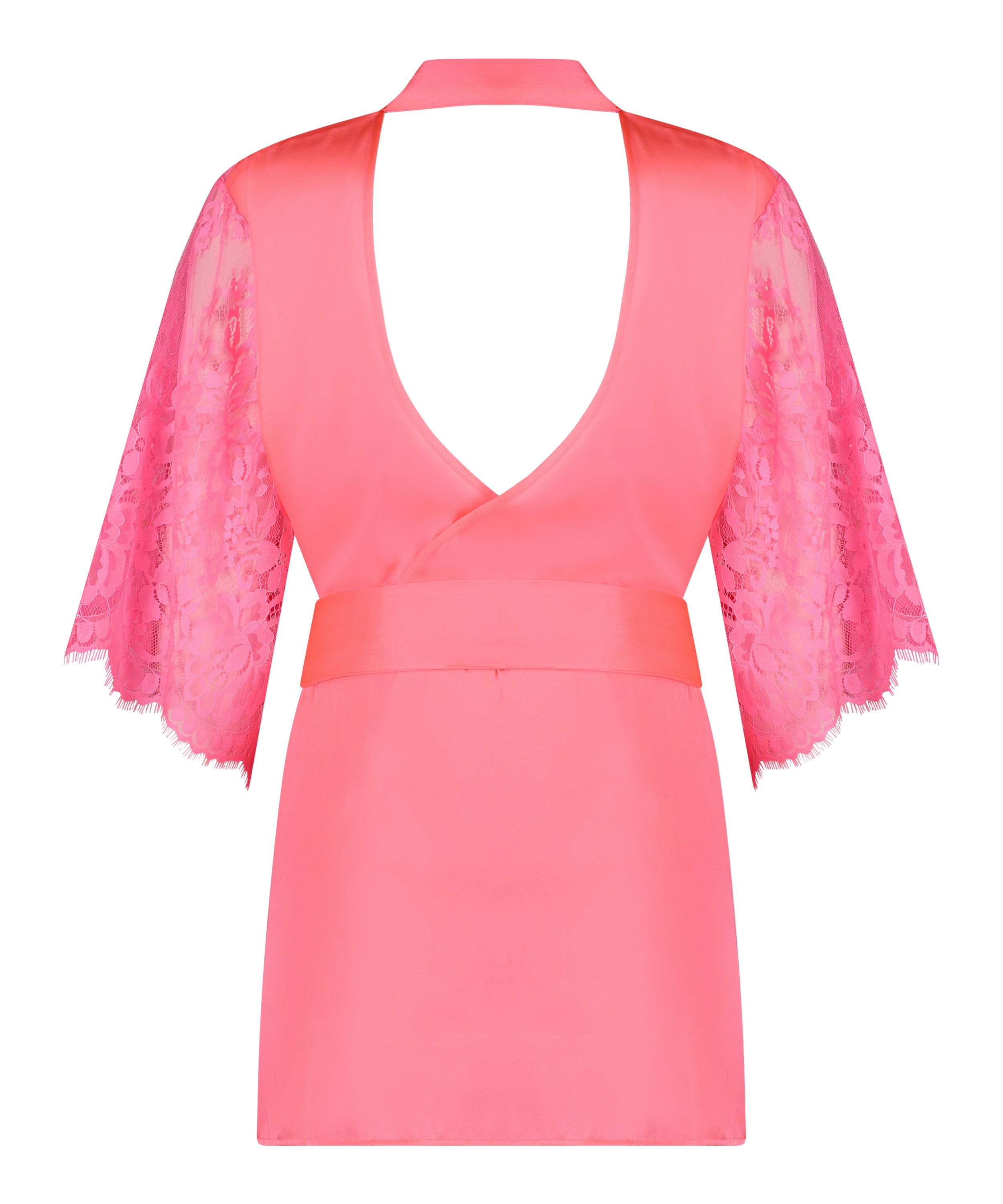 This kimono features a satin look and feel. The wide lace sleeves make your outfit super sexy: a real must-have. Combine with a pretty slip dress for a complete look. From our Private collection.