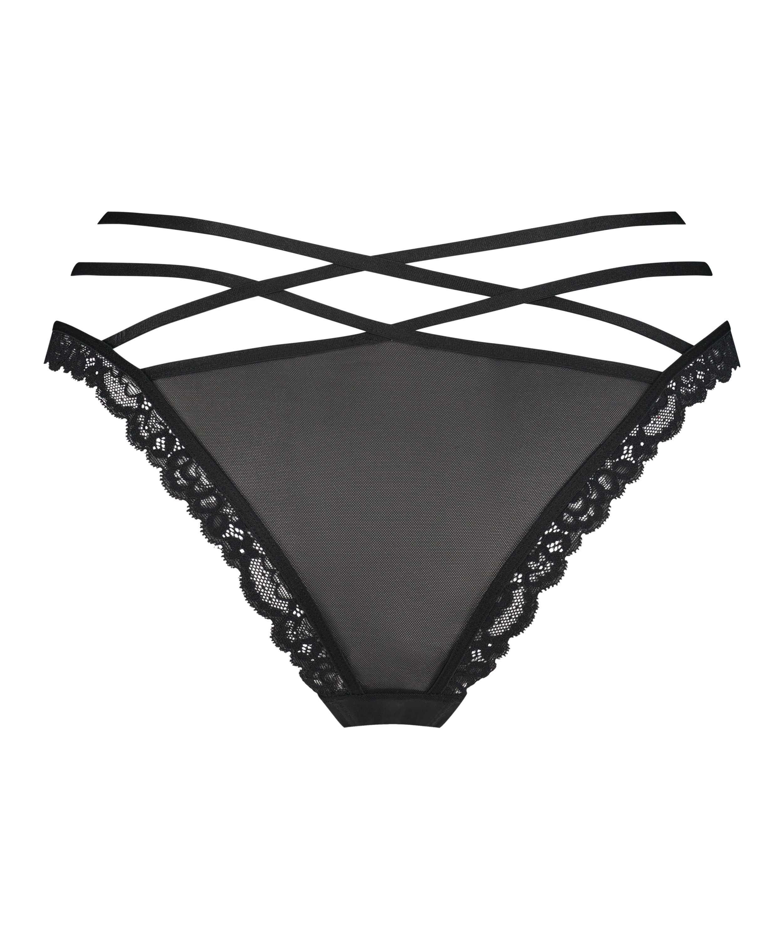 A delicate and elegant piece! The Jojo brazilian works with contrast lace, mesh and strappy detailing to create a beautiful yet sexy look and feel. Style it with your favorite lace pieces.