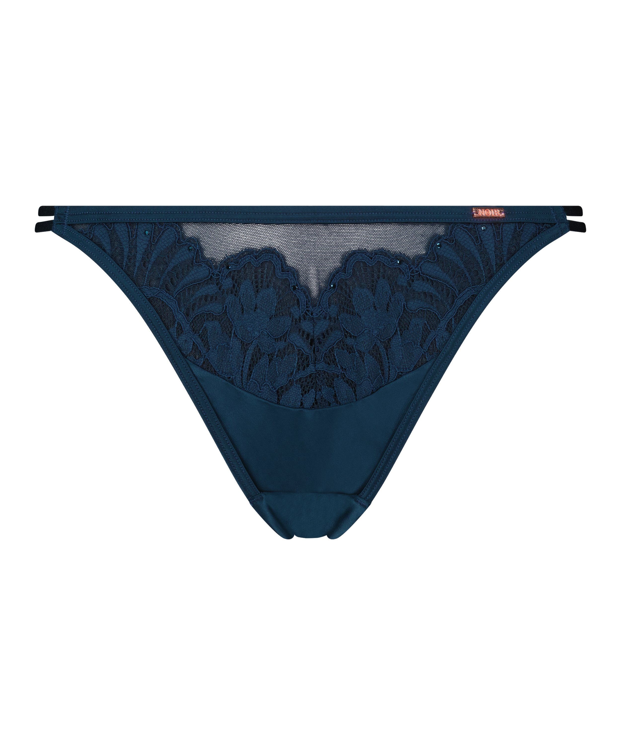 Enjoy this lace brazilian to the fullest! It has a semi-transparent look all throughout, with boning details on the front. Pair with the matching bra! Part of the Noir collection.