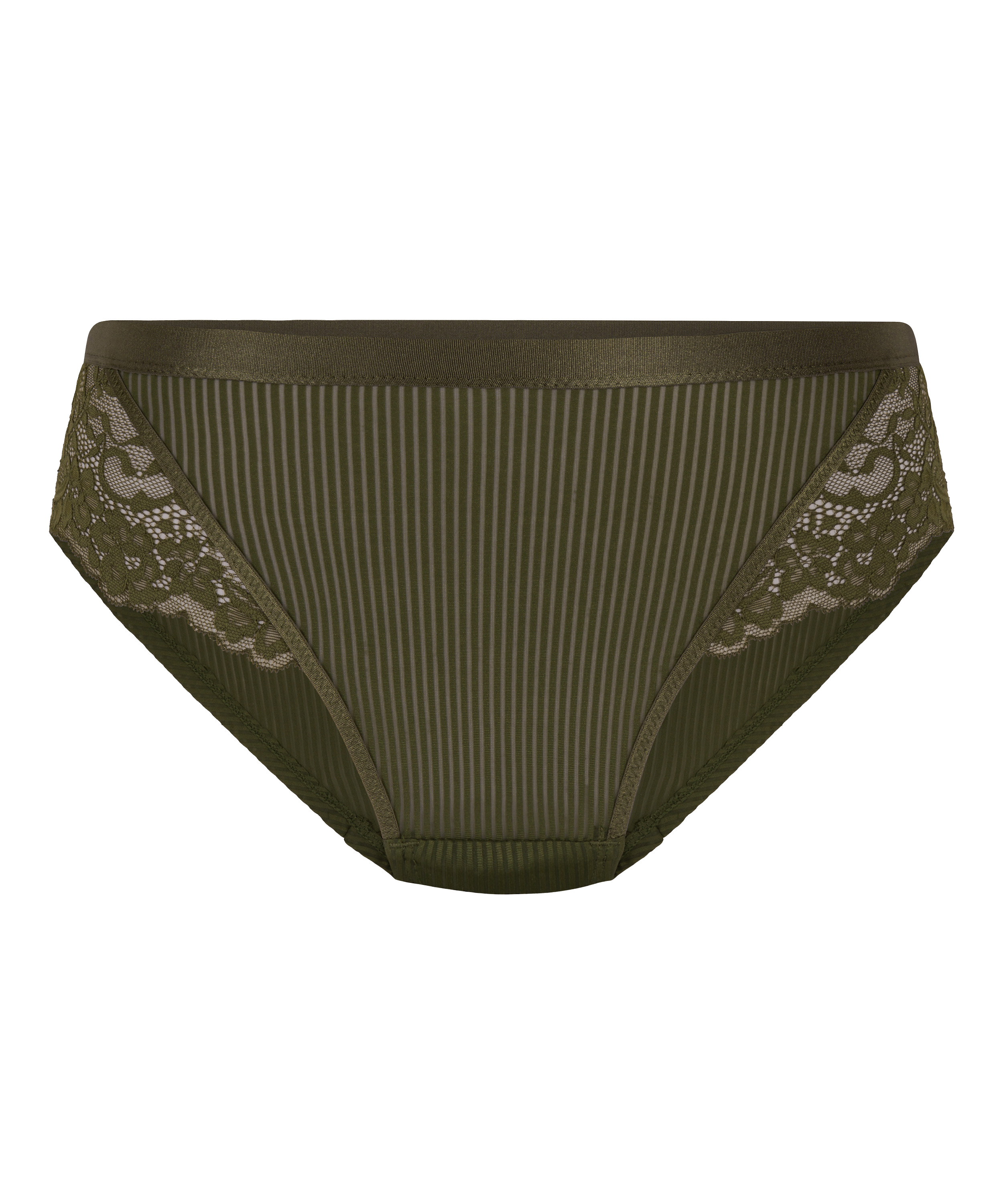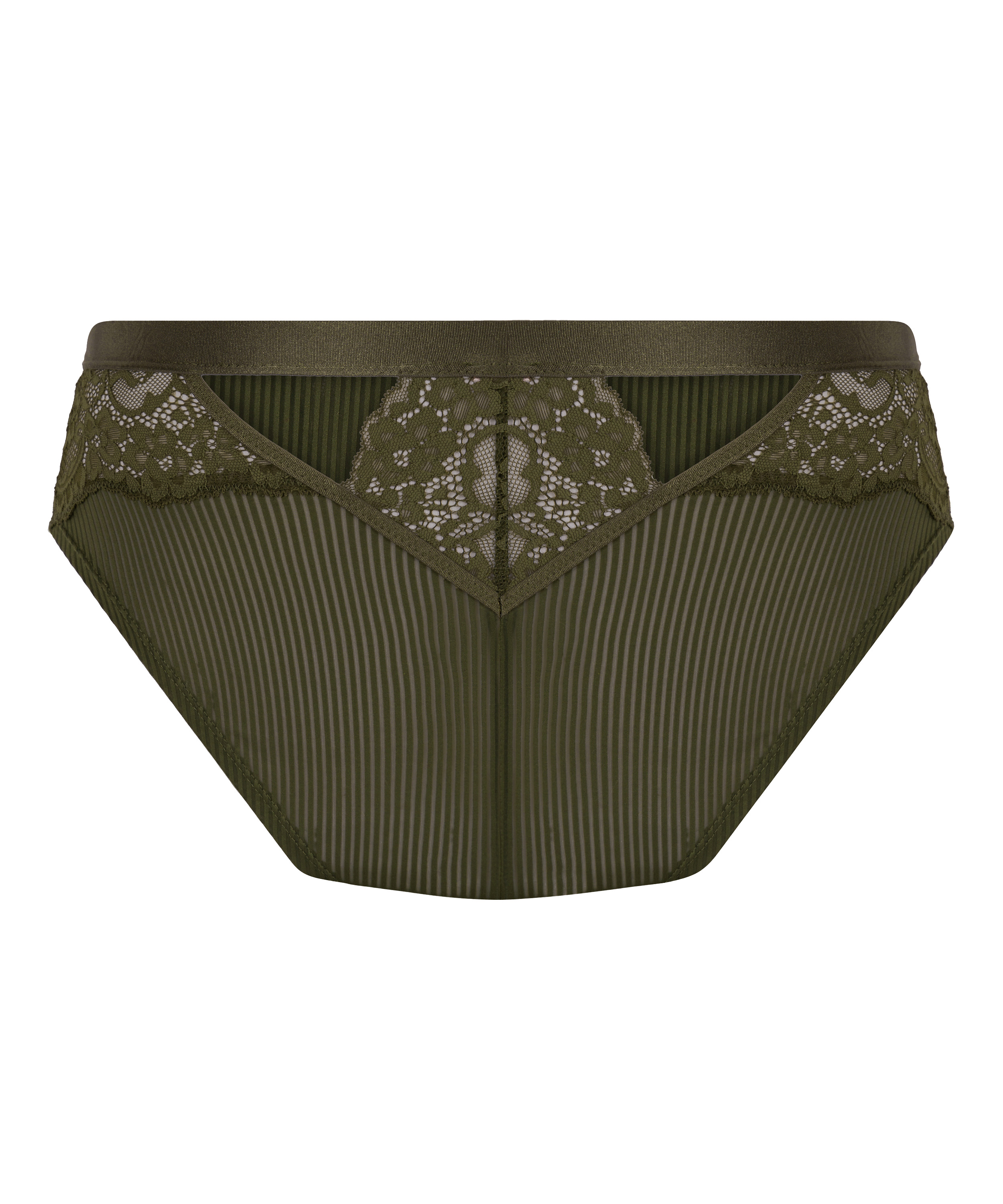 Feel good in this high-waist brazilian! It has a beautiful lace finish on the sides and a sexy lace cut-out on the back. Combine it with your favorite bra!
