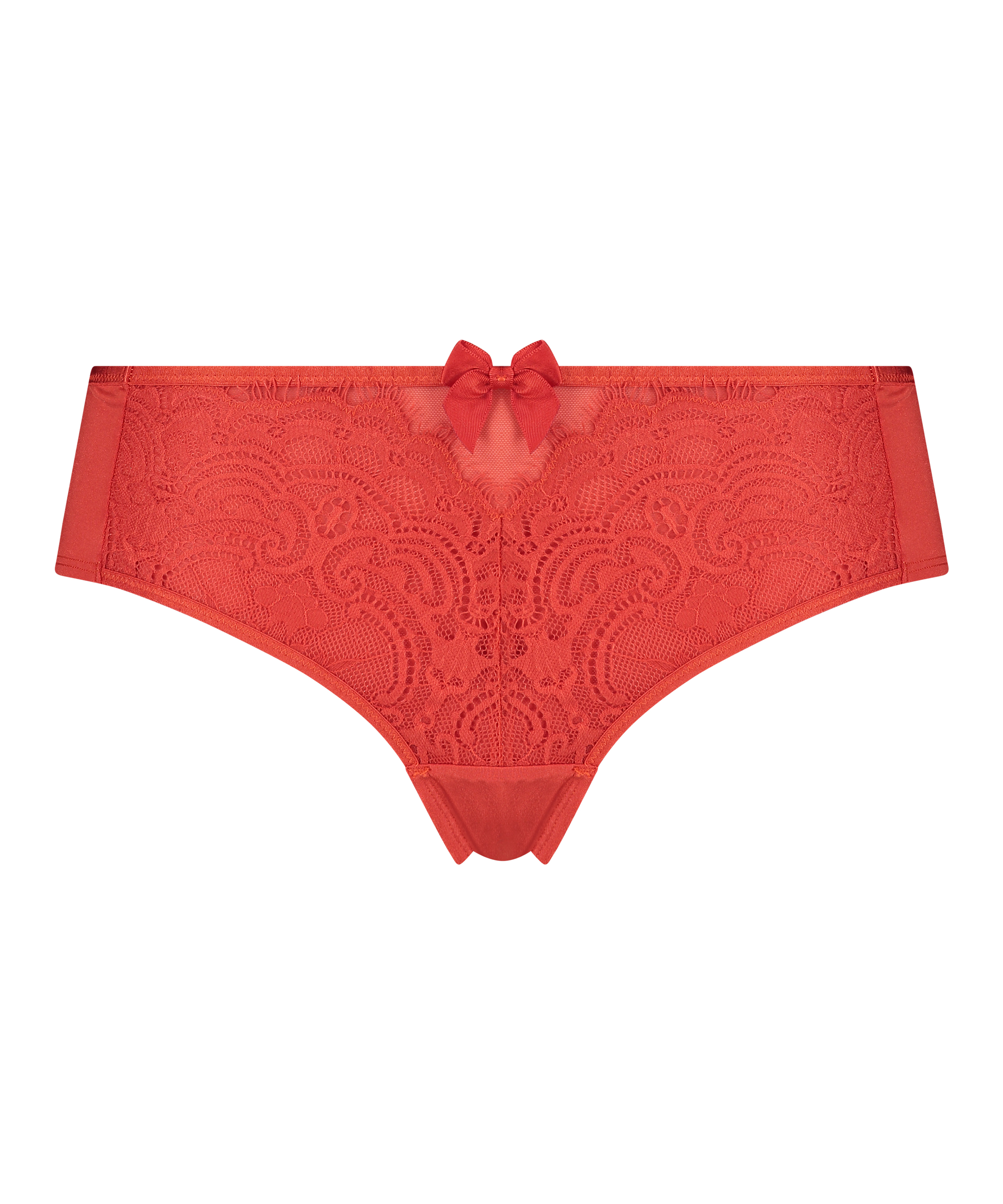 This beautiful Brazilian is finished with a lot of lace. There is a cheeky cut-out at the back. The bow on the front completes the Brazilian. Combine with one of the matching items!