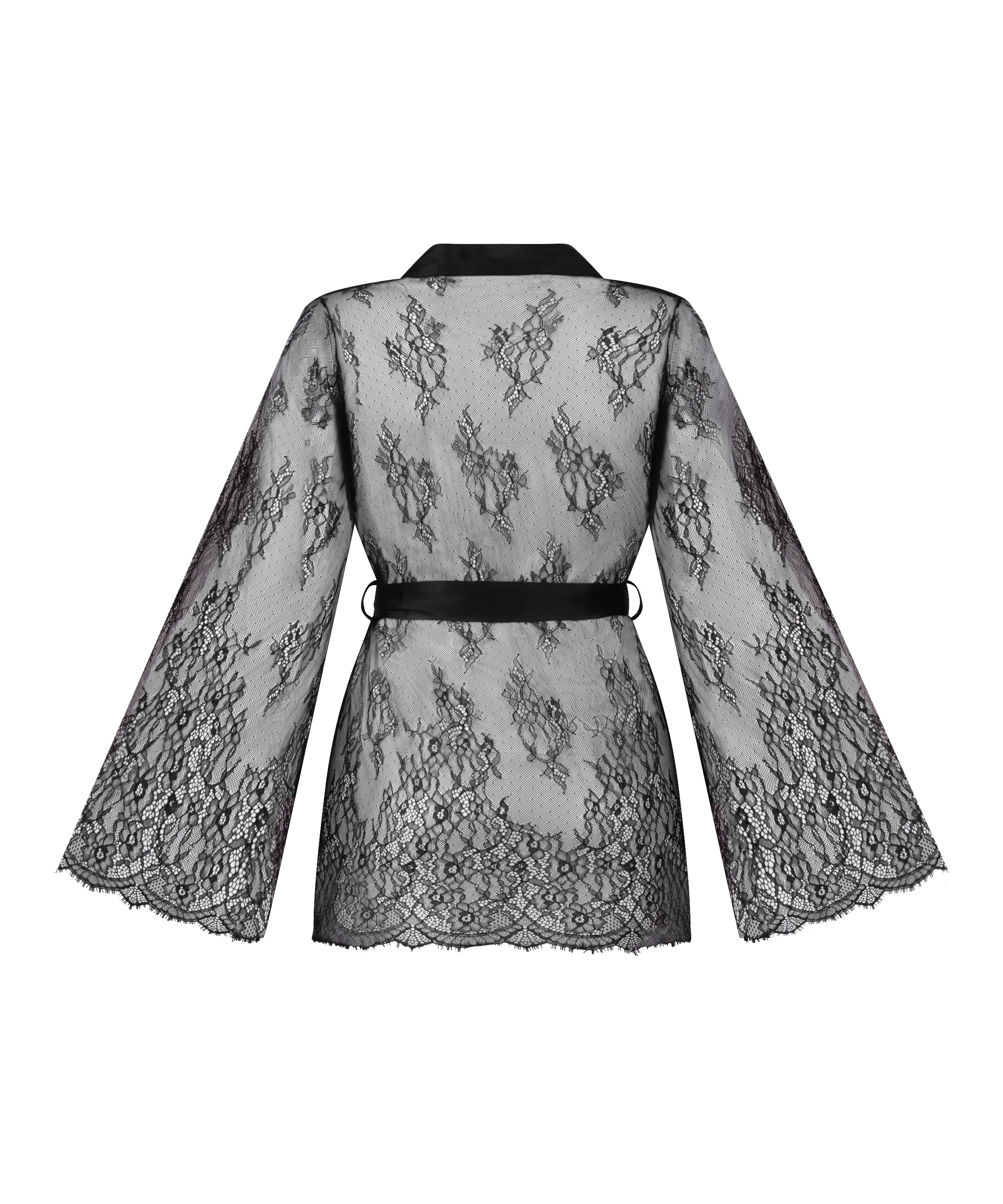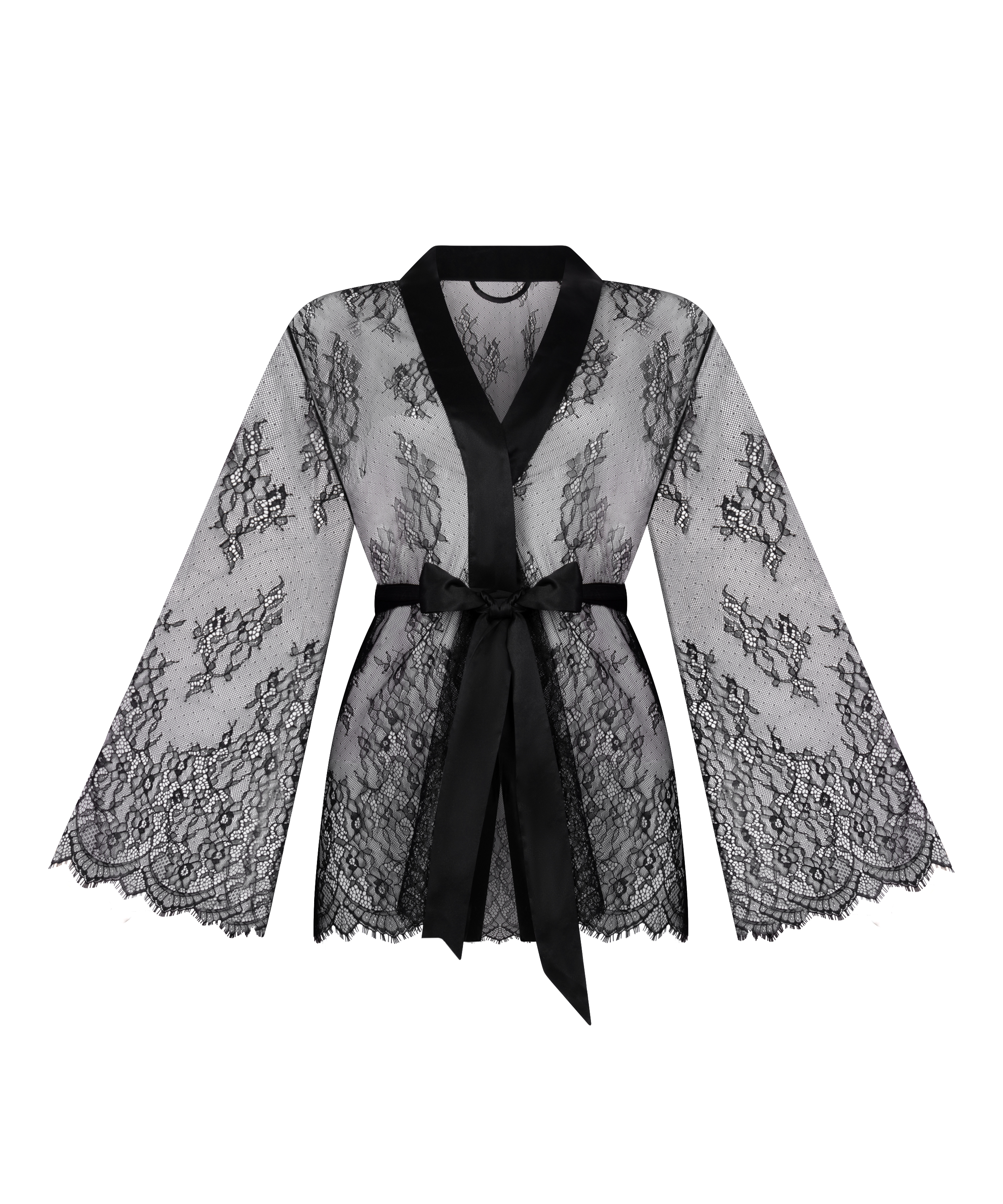 Wrap yourself in elegance with our all-over lace kimono, a luxurious addition to your lingerie collection. This stunning piece features all-over lace that exudes femininity, while the silky satin tie chinches the waist for a flattering silhouette.