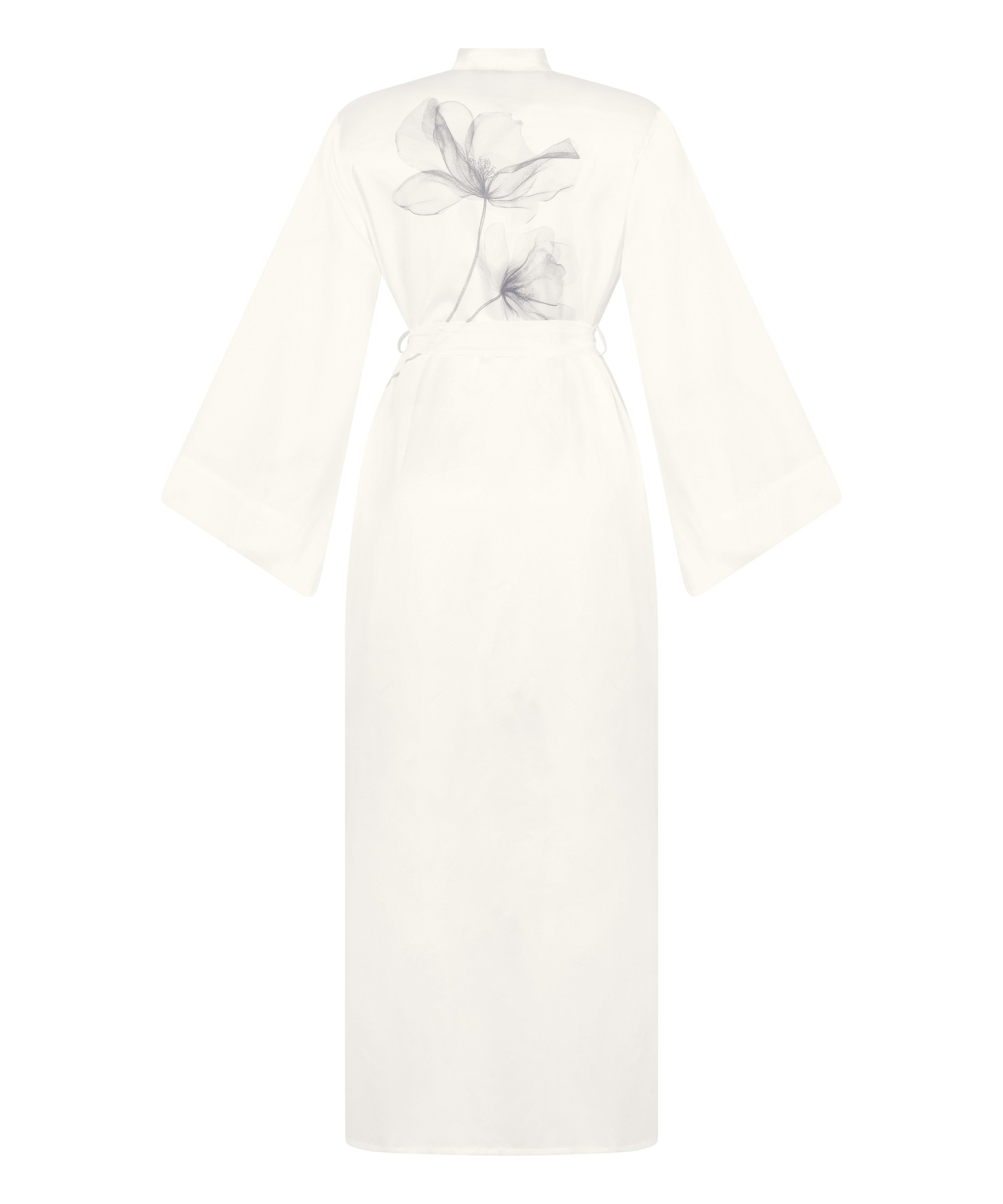 Kimono Long Satin Floral - White