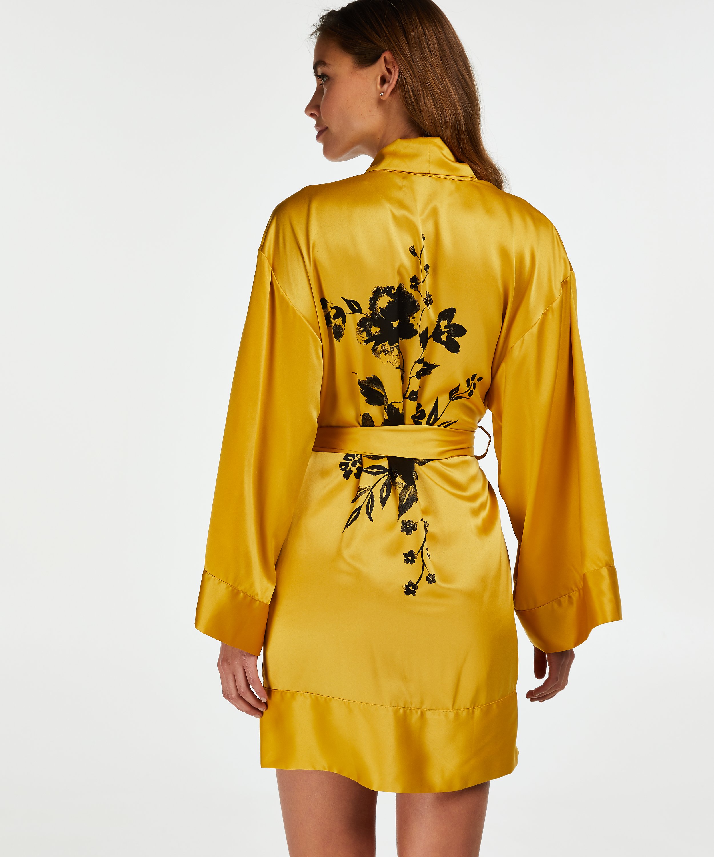 Make your lingerie set complete with this seductive kimono! The back is finished with a floral pattern.