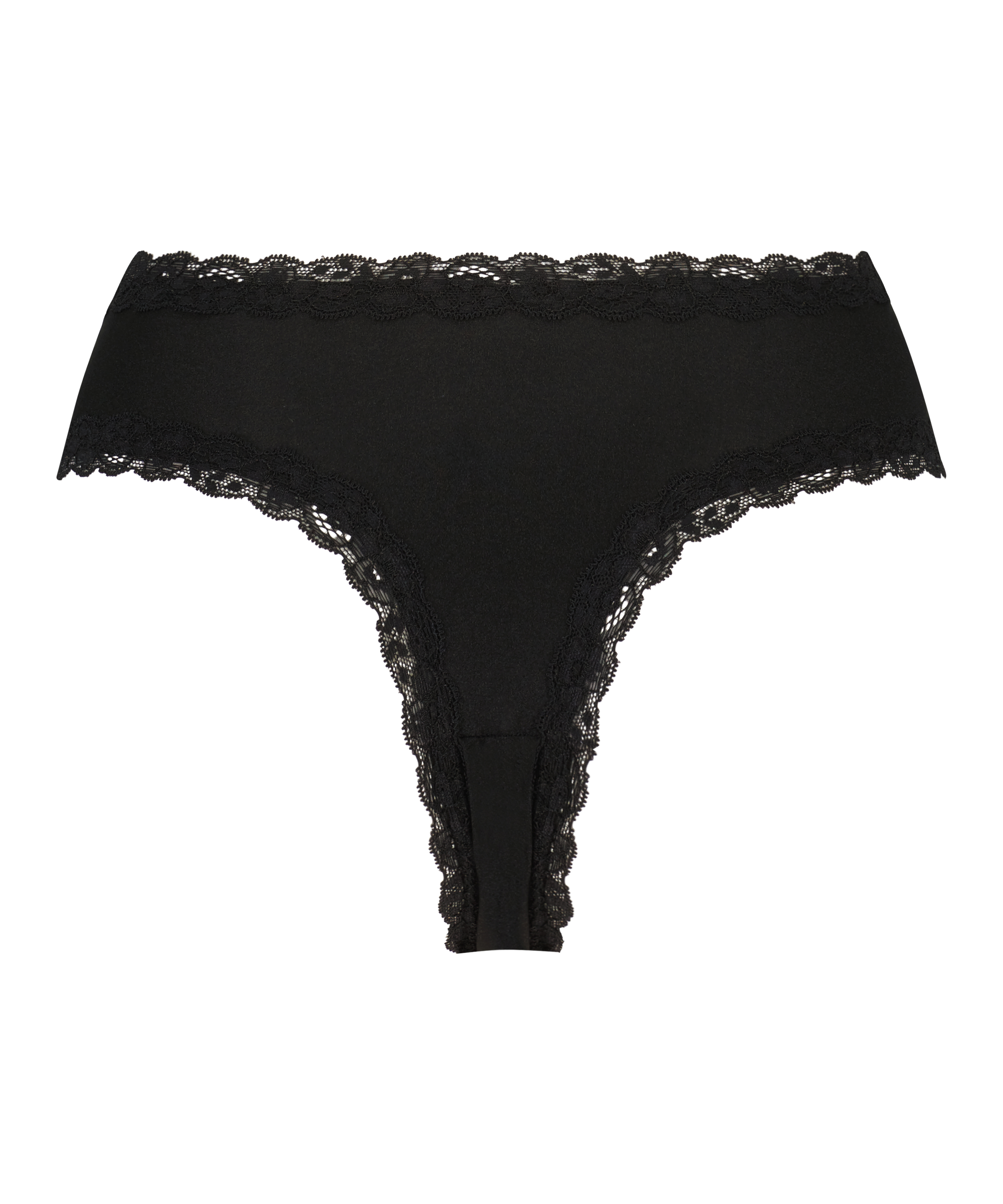 These semi-transparent Brazilian knickers are finished with lace details. The lace-up details give them an extra sexy look. The front is made from mesh and the back is made from microfibre fabric. Combine with the matching bra for a complete look.