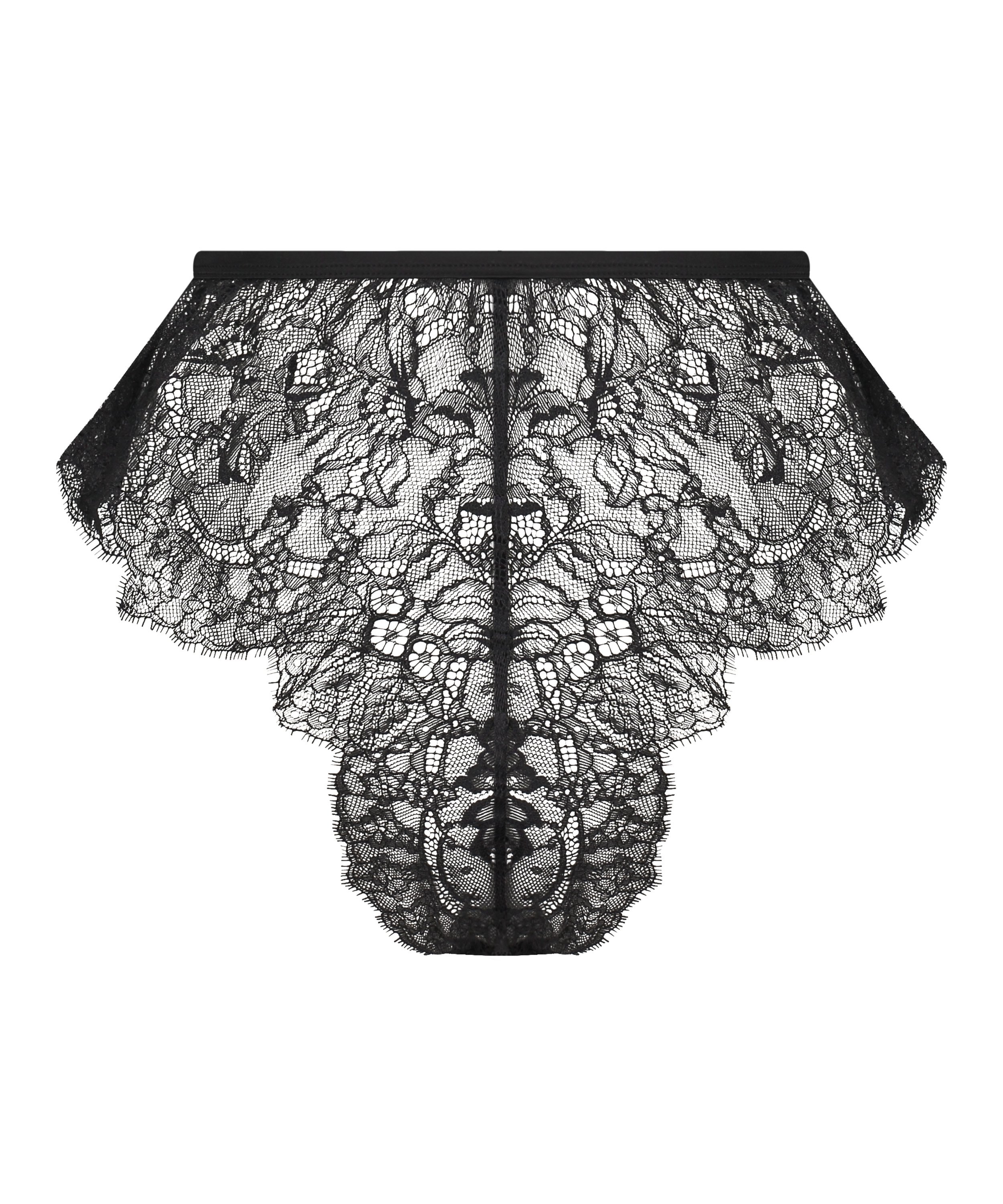 Embrace your divine essence with these appealing knickers! Fully crafted from delicate floral lace, these enchanting panties feature a delicate and flowy hemline created with lace edges, completed by a subtle V-shaped waistband with cheeky bottom coverage. This is from the Noir collection and can be paired effortlessly with the Wired Peplum Lace Camille Top to complete your ensemble with elegance and allure!