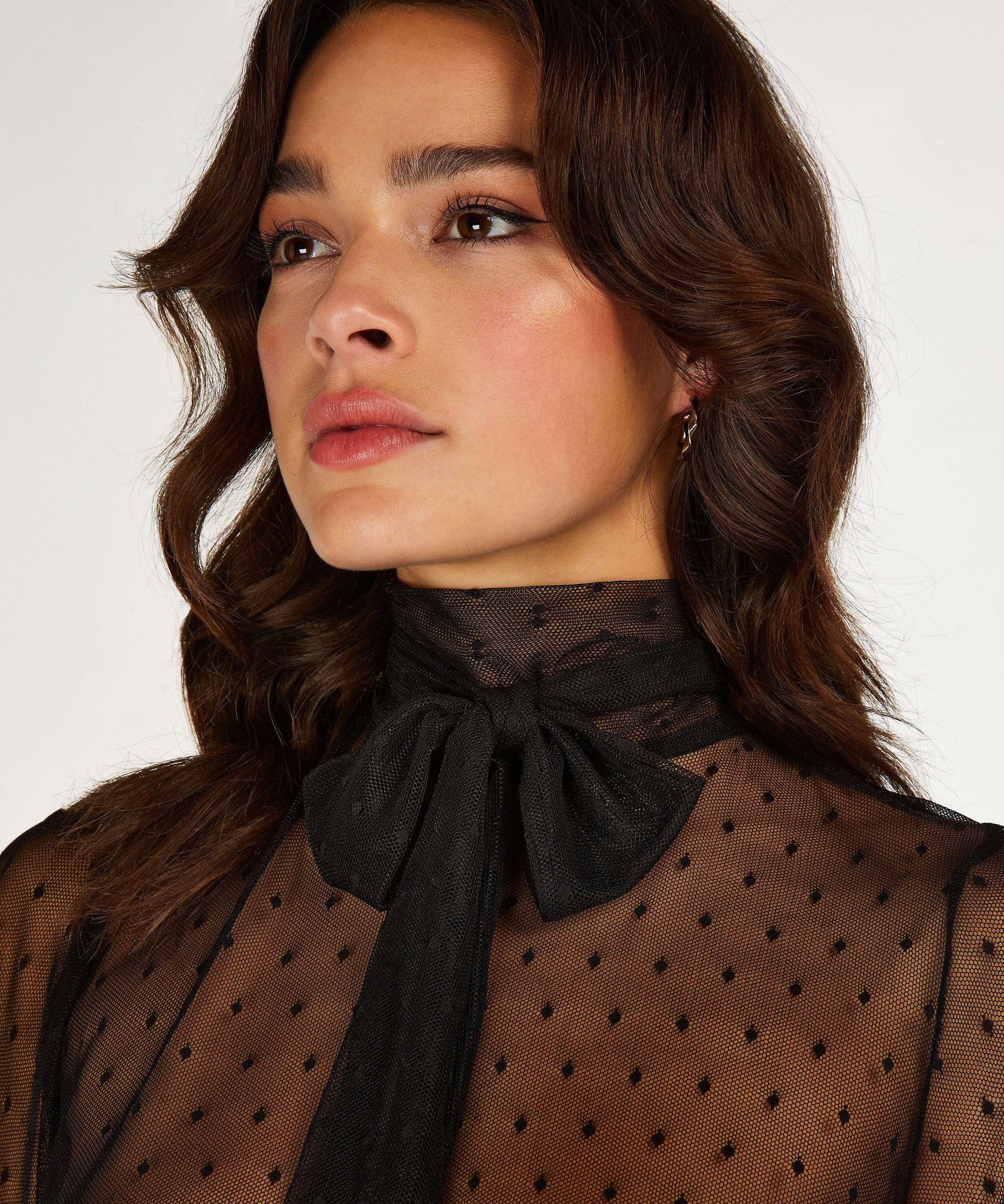 Add a romantic touch to your outfit with this semi-transparent top. Perfect for a romantic date night, or to simply make a breathtaking outfit.