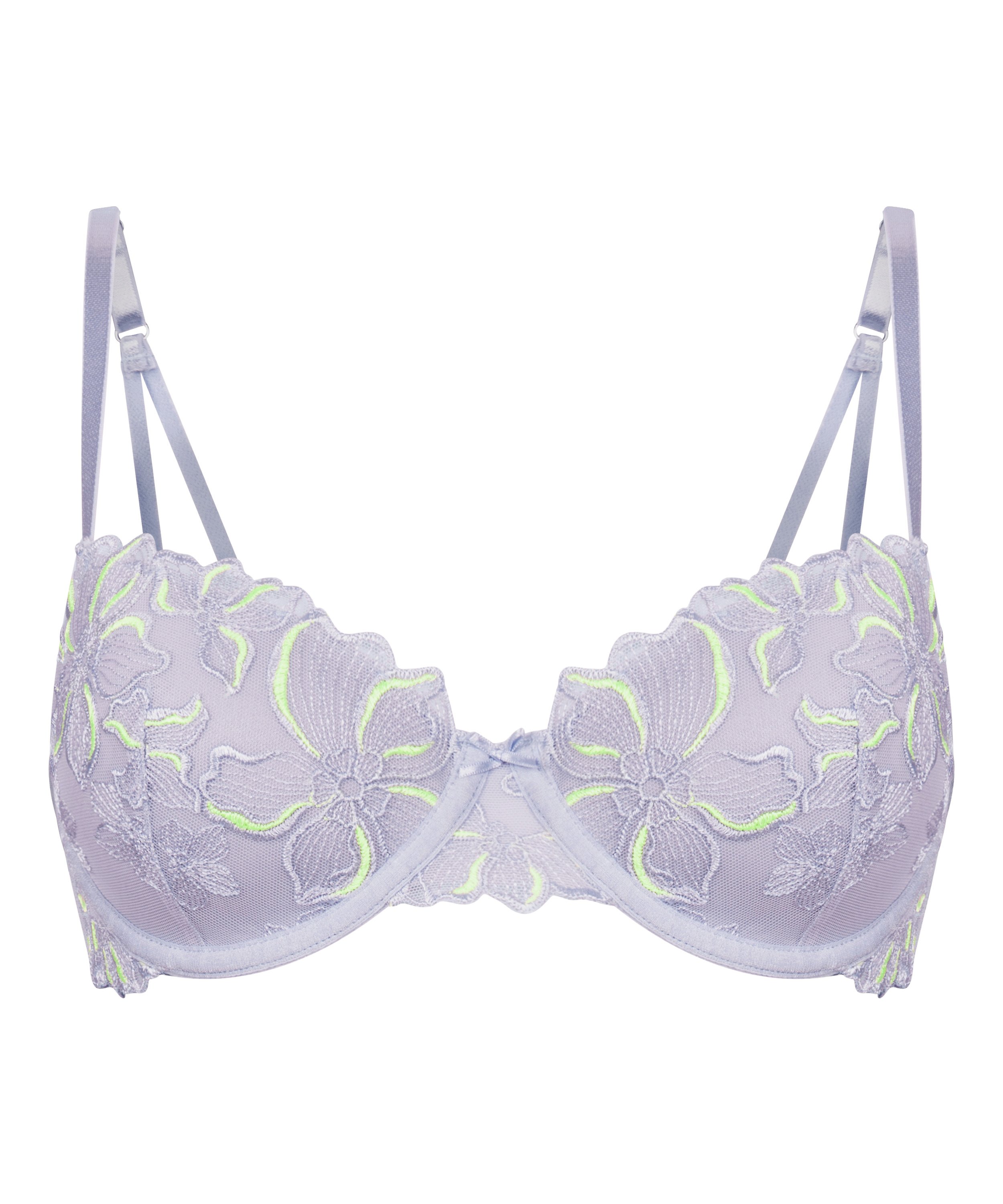 Graceful and romantic, our Lauren bra is designed to highlight your antural shape with elegance. Featuring semi transparent, non-padded cups adorned with floral embroidery, this bra offers a beautifully lightweight feel. Combine with the matching bottom for a complete look.
