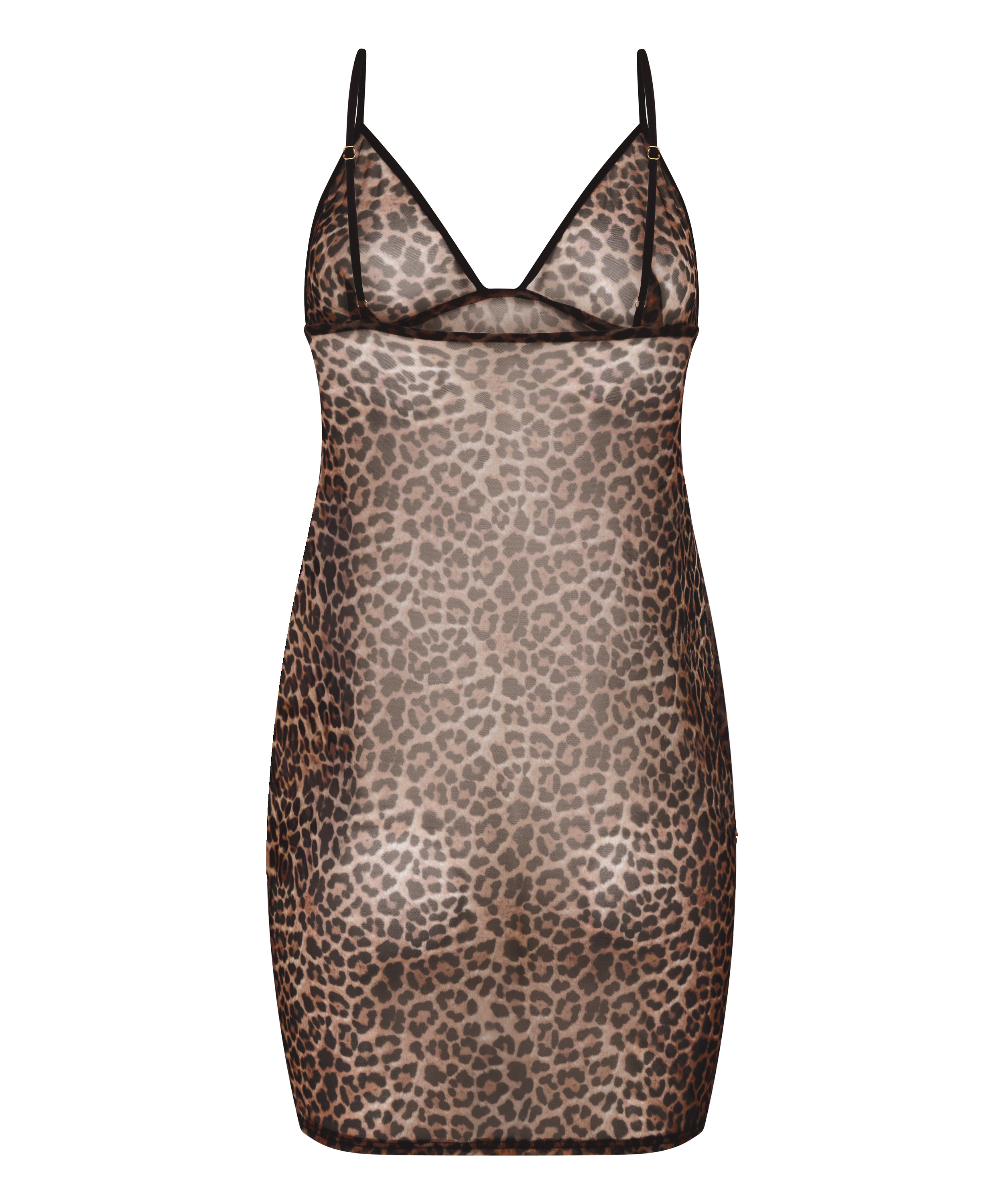 Leopard Mesh Slip Dress - Black