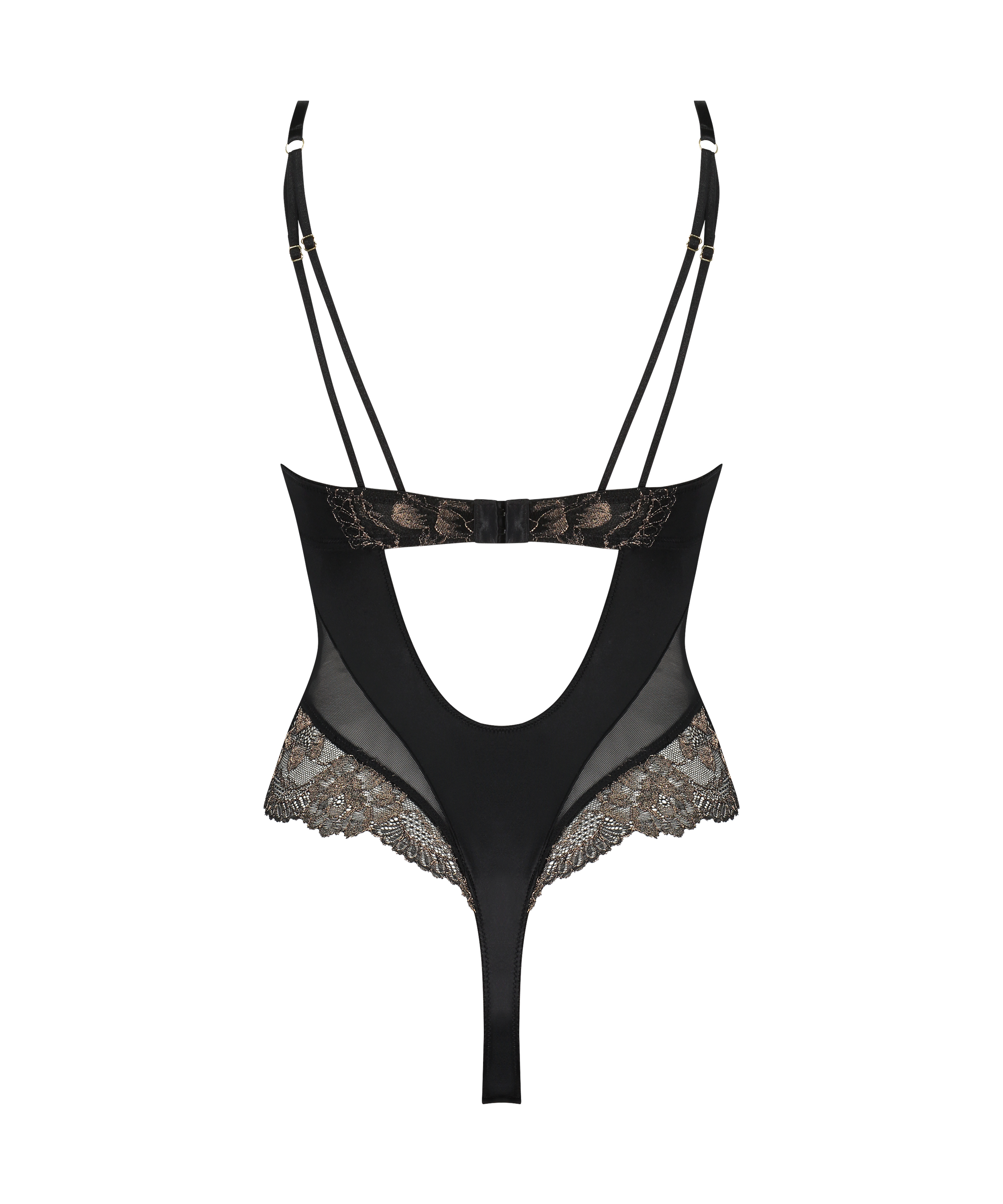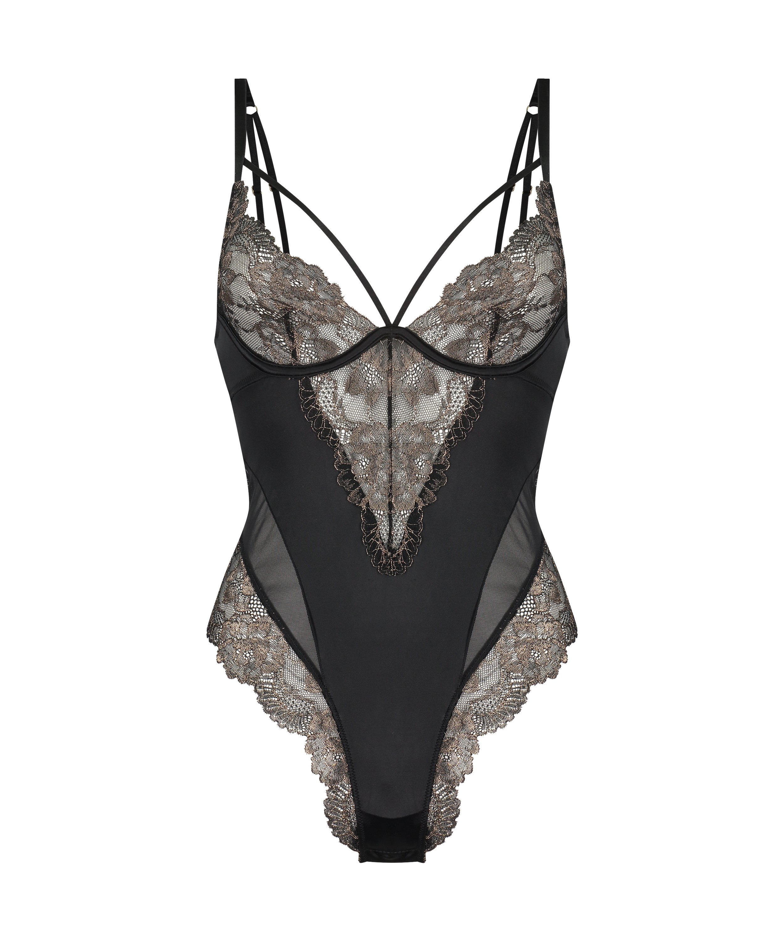 Feel yourself in this beautiful body! With lots of lace details on the front and hips. Along with sexy strappy details on the breasts. The sheer fabric makes for an even hotter look! Get buying!