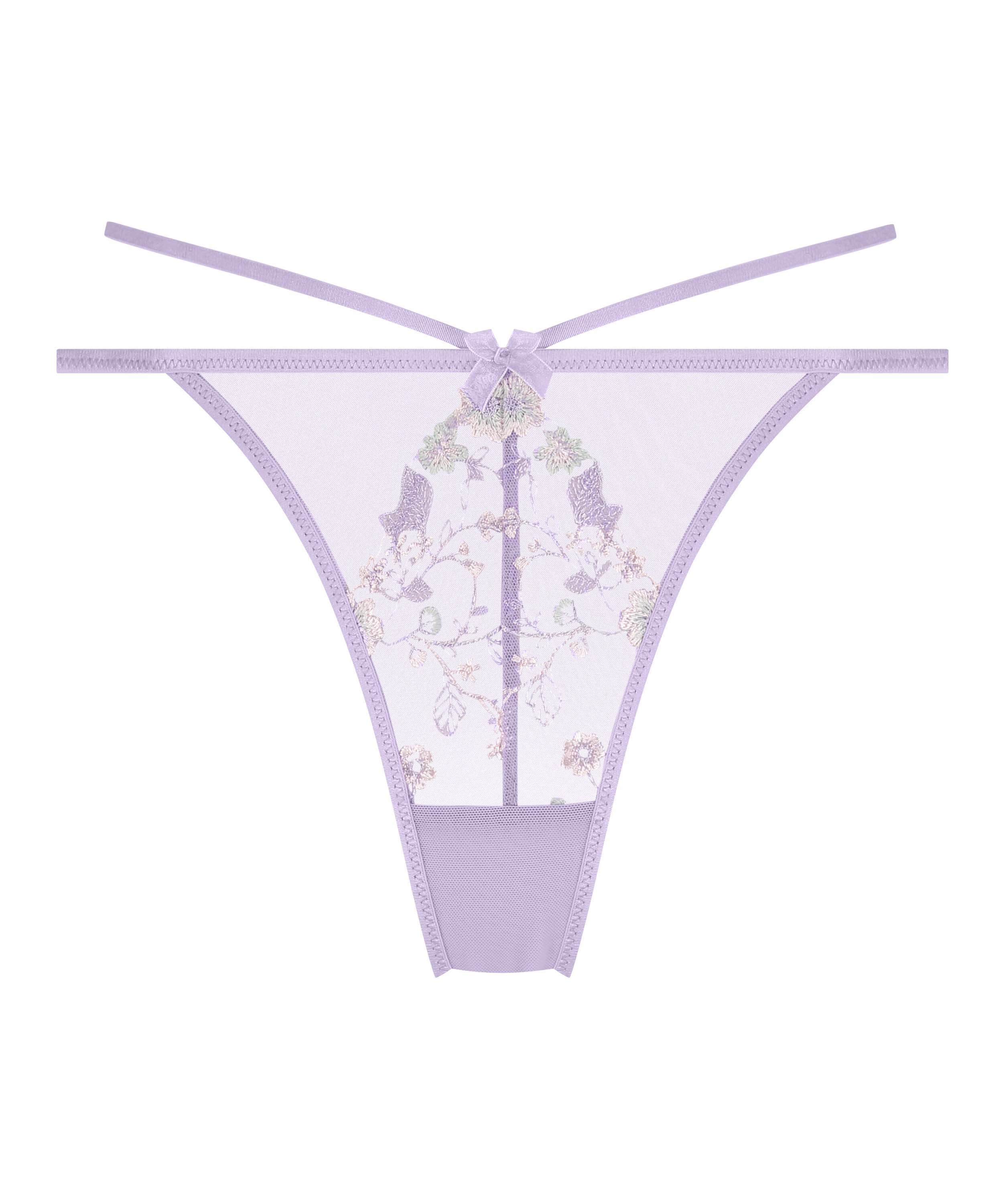 How nice is this thong? It includes both lace and mesh and a pretty bow on the front and back. Combine with matching items for the complete look!