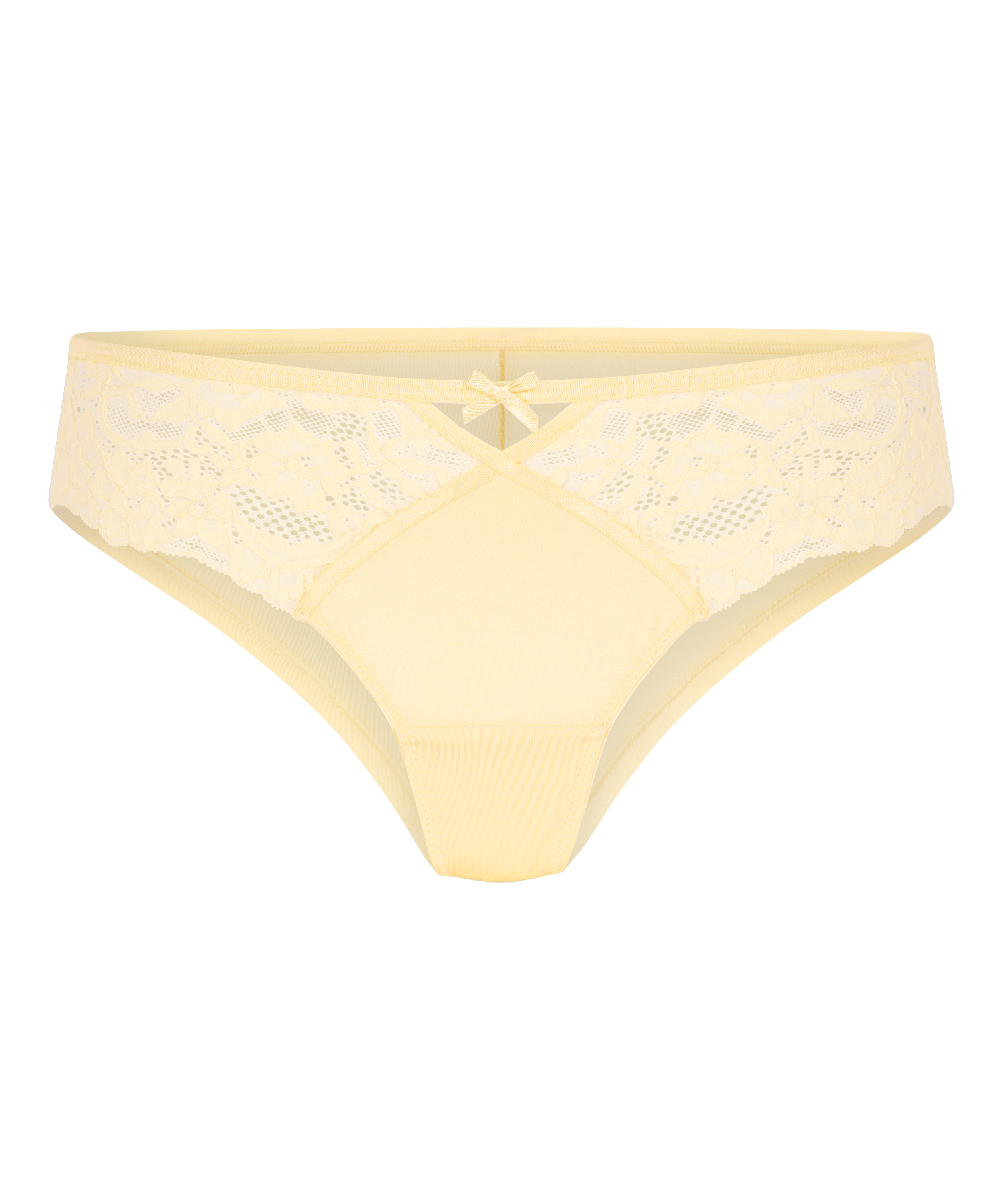This cheekini features a stylish cross detail on the front, complemented by a playful cutout above. Delicate lace and a decorative bow add an elegant touch.
