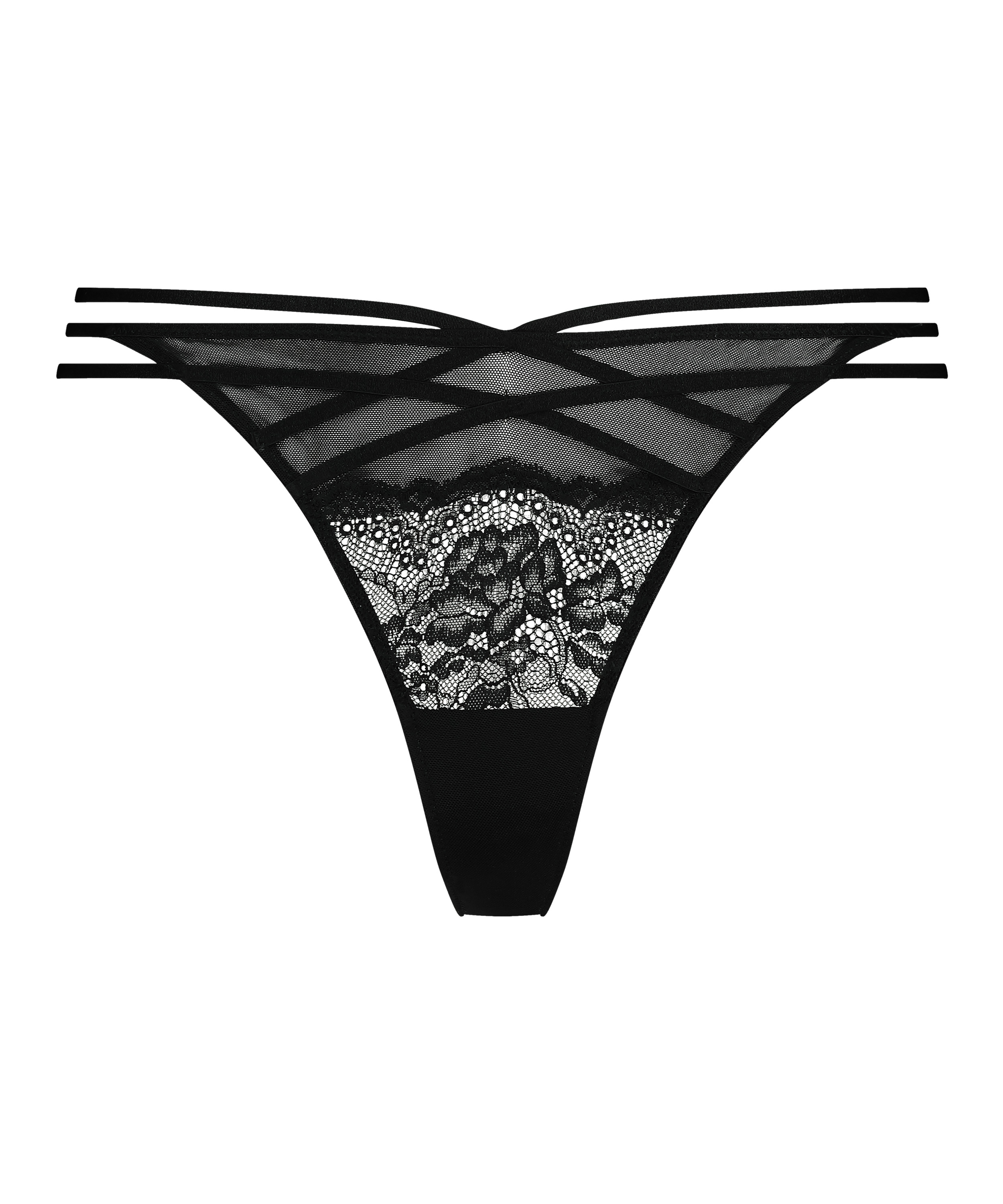 Embrace your curves in this sensual high leg thong! This thong has lace details in the front and mesh in the back. The strappy details around the hips allow for a very sexy fit. Combine this with one of our current favourites!