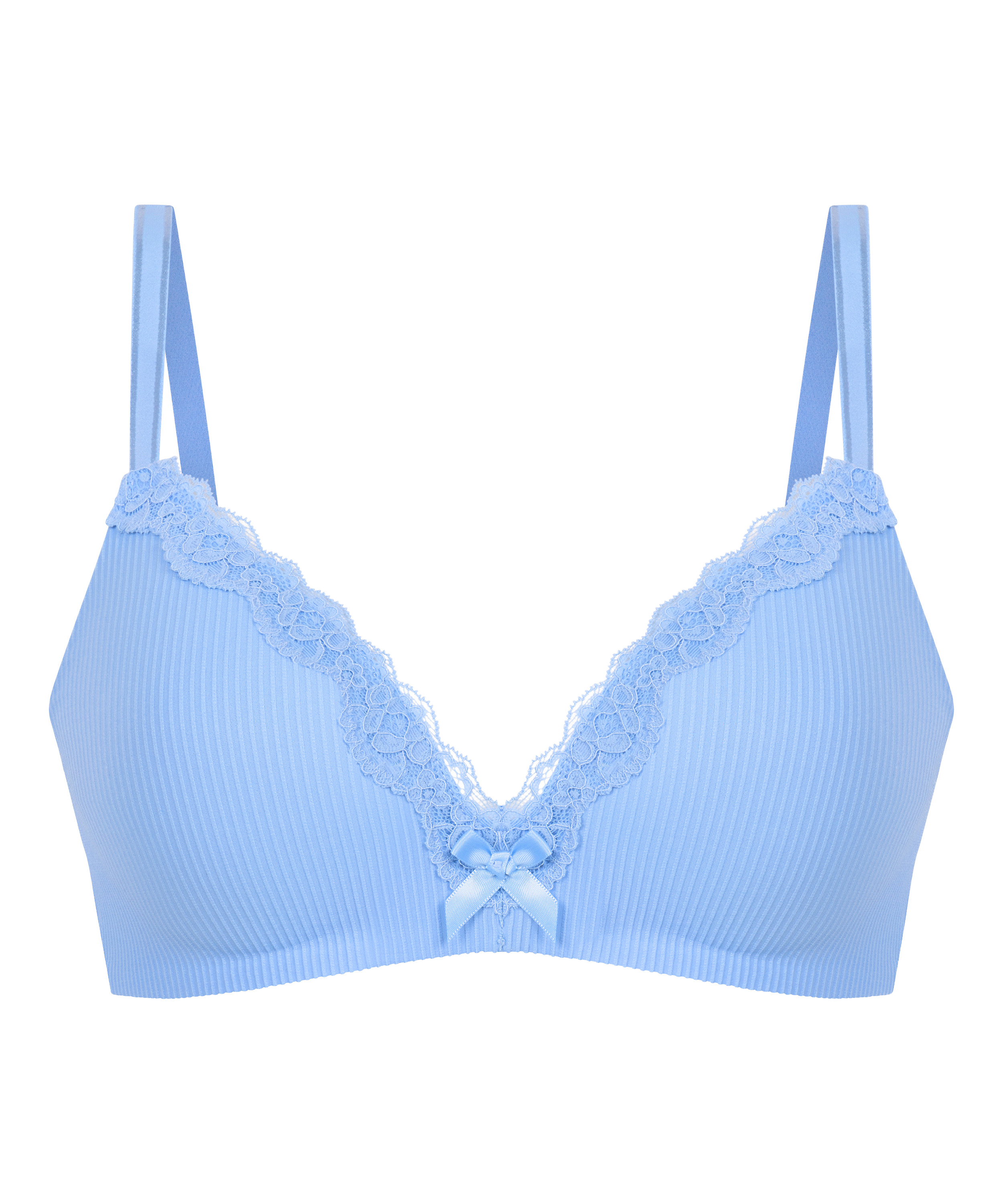 A pretty bra with gorgeous lace trimming and a pretty bow on the front. The bra is padded and non-wired. Combine with matching knickers.