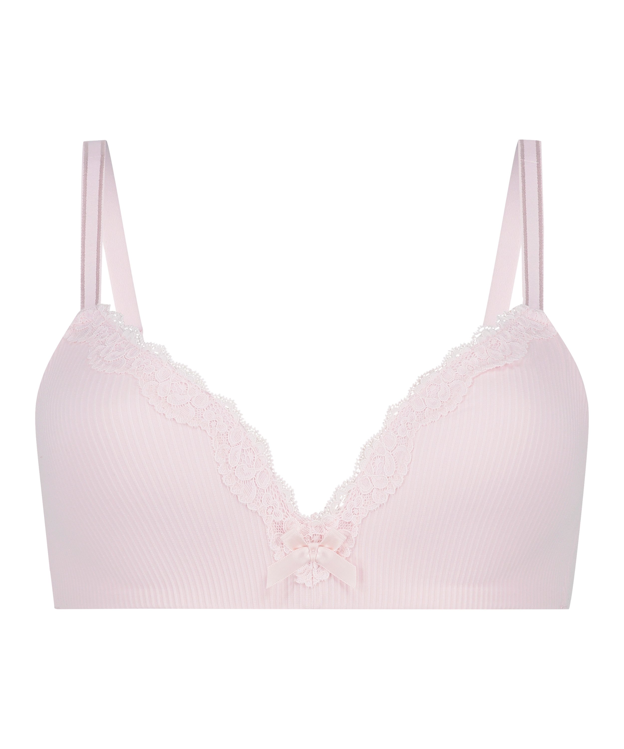 A pretty bra with gorgeous lace trimming and a pretty bow on the front. The bra is padded and non-wired. Combine with matching knickers.