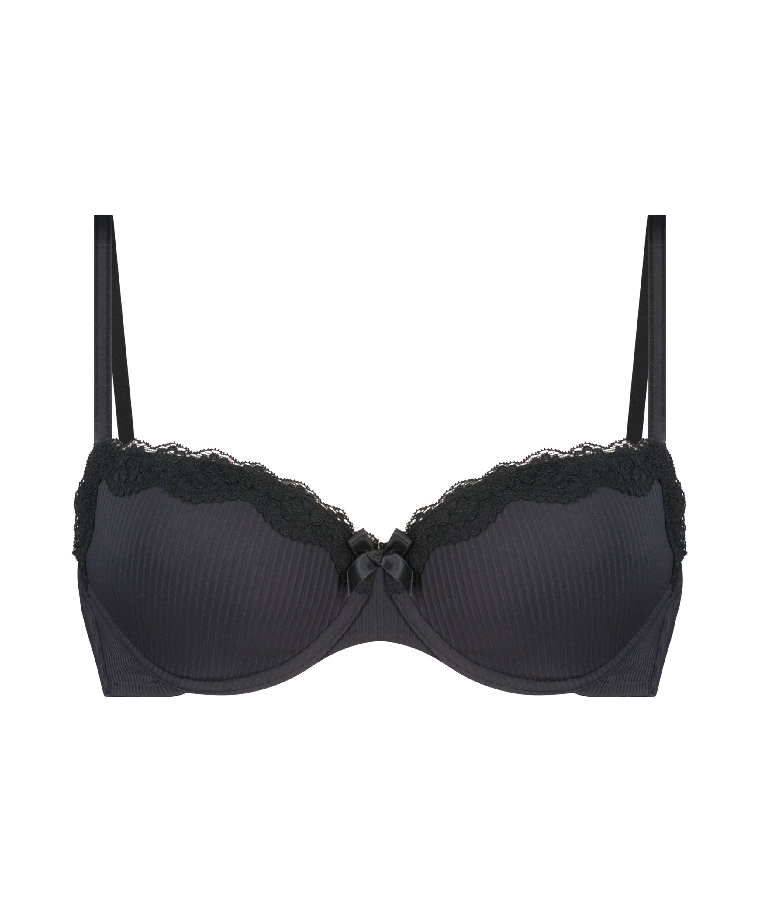 This padded underwired bra is finished with lace details on the top of the cups. Between the cups is a small bow for an extra sexy look. Mix with the matching items!