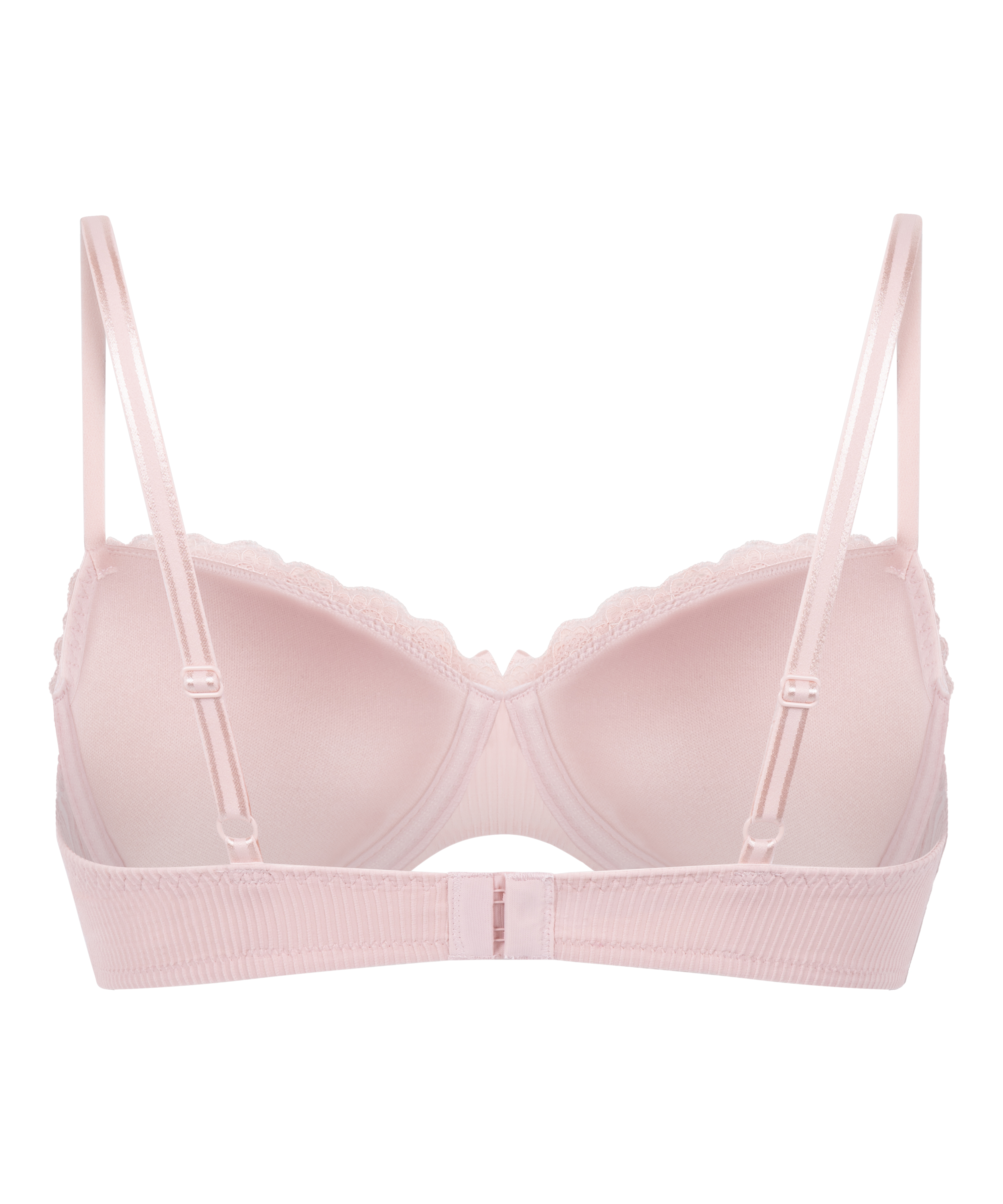 This padded underwired bra is finished with lace details on the top of the cups. Between the cups is a small bow for an extra sexy look. Mix with the matching items!