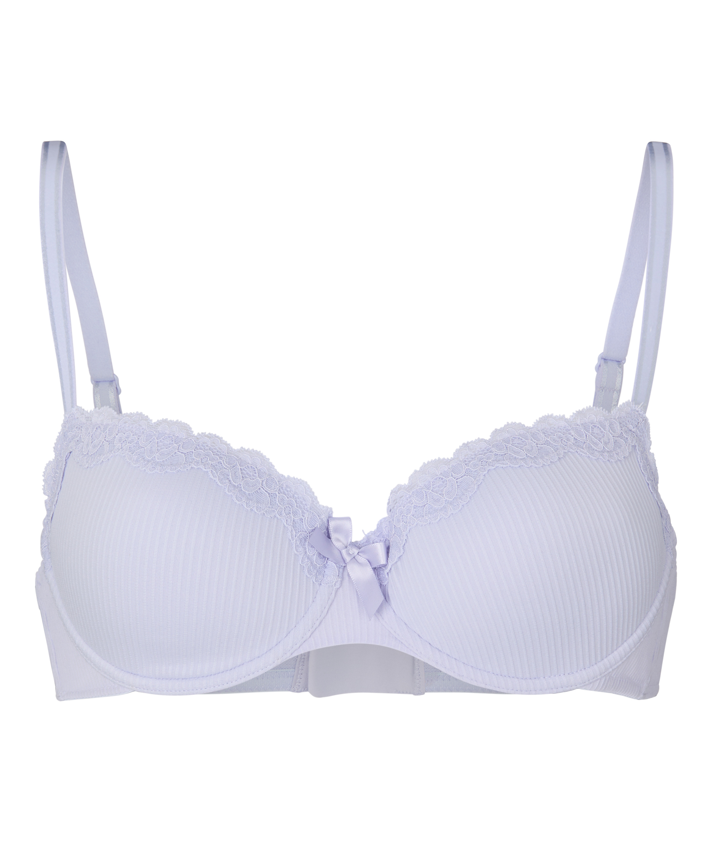 This padded underwired bra is finished with lace details on the top of the cups. Between the cups is a small bow for an extra sexy look. Mix with the matching items!