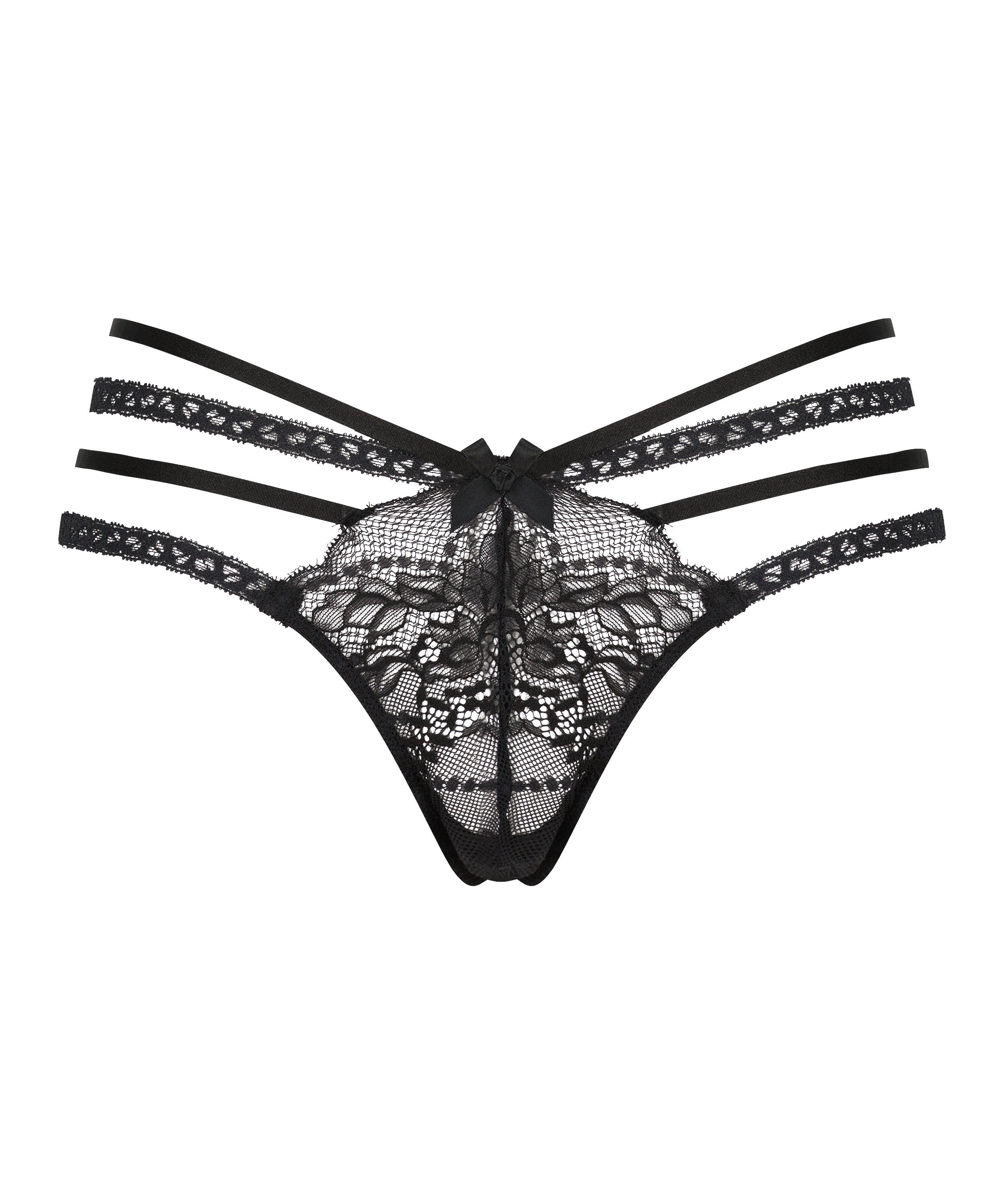Feel super sexy in this thong! It is mainly made of lace, there is a nice bow at the front and the strappy details are the perfect finishing touch. Combine with your own favourite items.