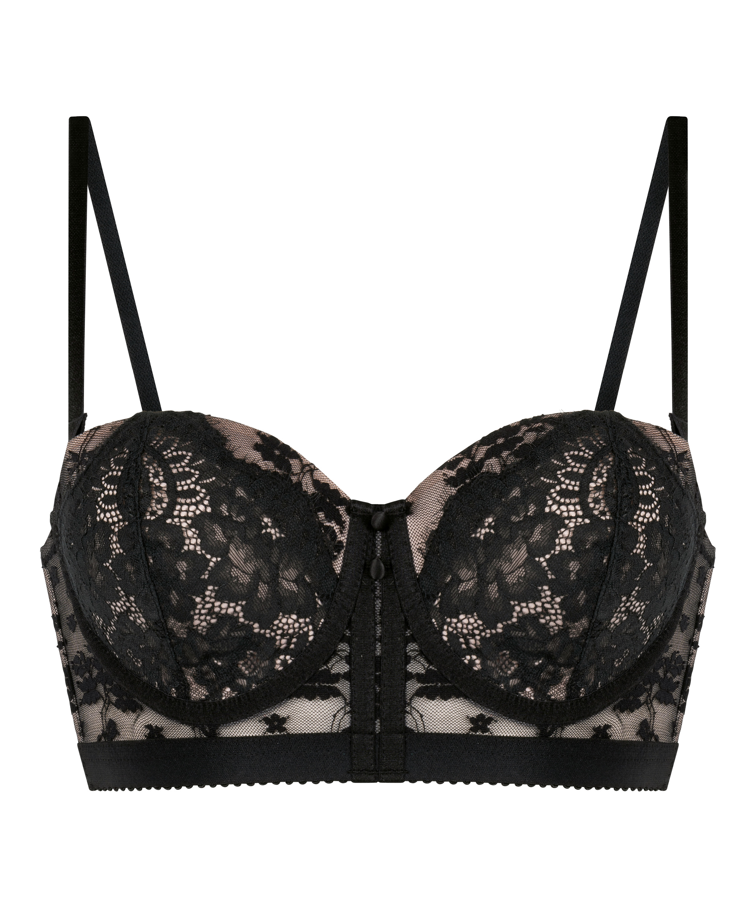 Designed to flatter and support, this padded longline bra is a true blend of structure and elegance. Featuring underwired cups for enhanced lift and shaping, it’s made with padding that offers comfort without compromising on style. The extended longline silhouette smooths and contours, while delicate lace detailing adds a romantic, feminine finish. Combine with the matching bottom for a complete look.