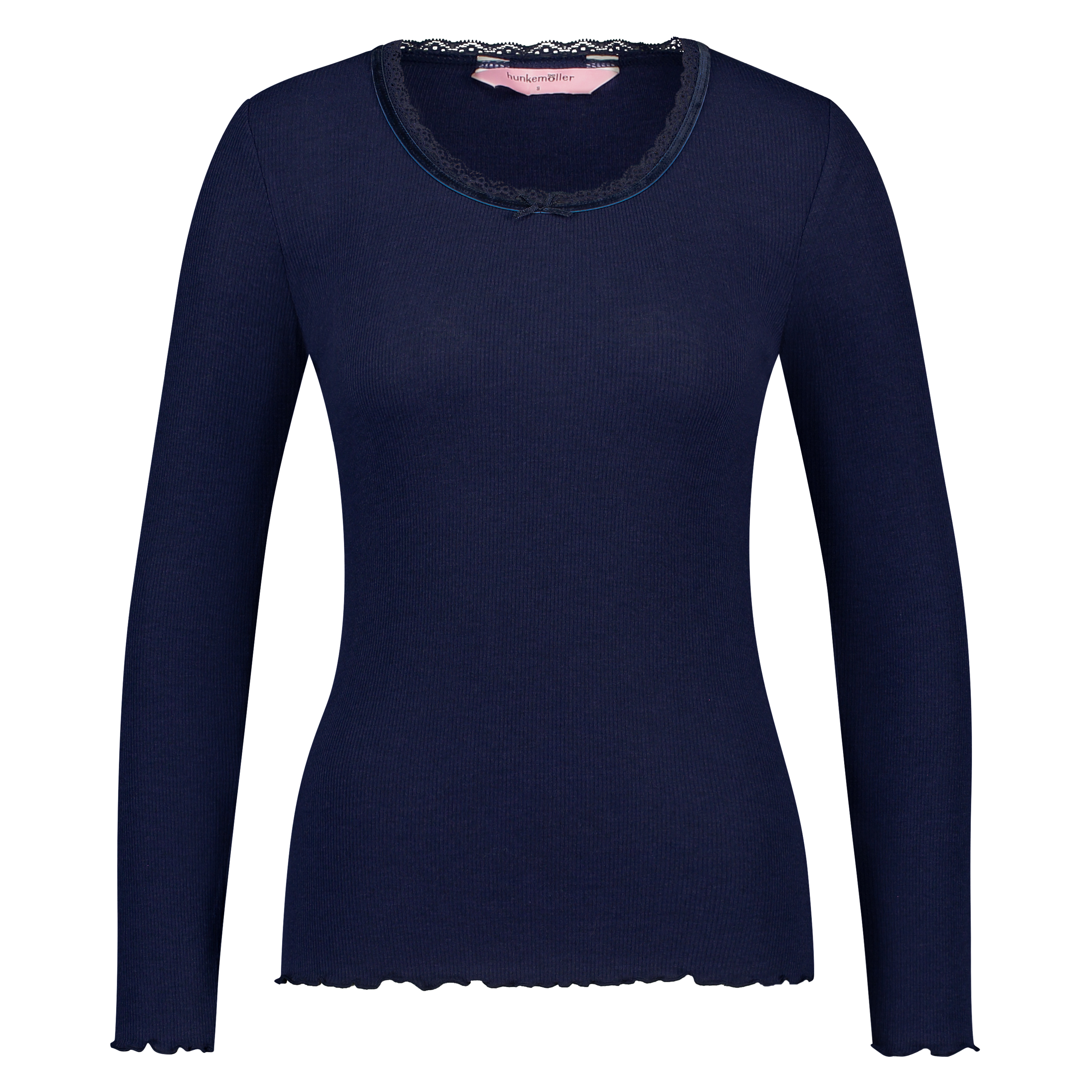 This long-sleeved top has a ribbed texture. The round neck is finished with lace edging.