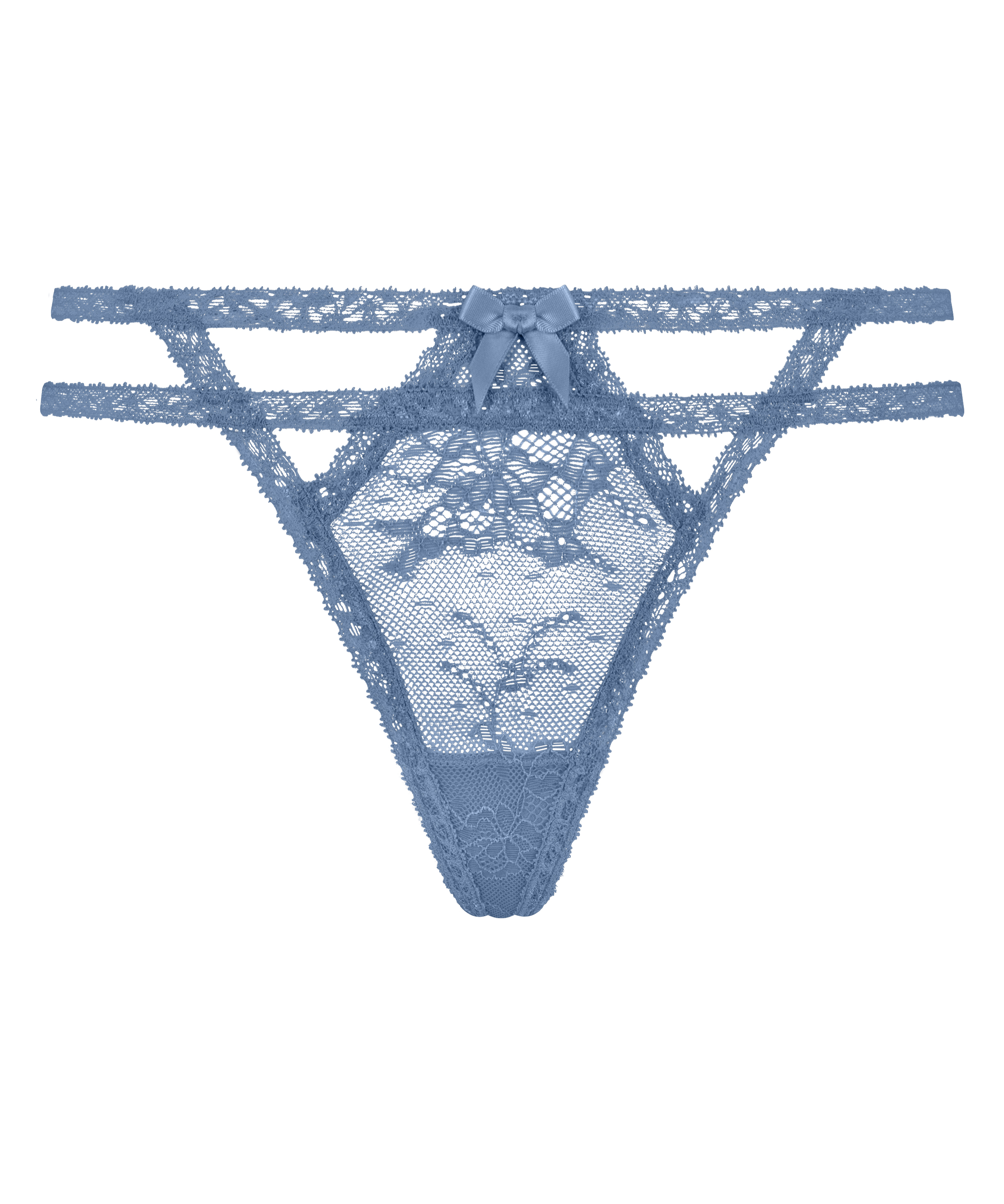 Elevate your lingerie collection with out thong. This exquisite piece features all-over lace that beautifully sculpts your curves, offering a sensual yet elegant look. The bold strappy details add a modern edge, while the sweet bow at the front adds a playful and feminine touch.