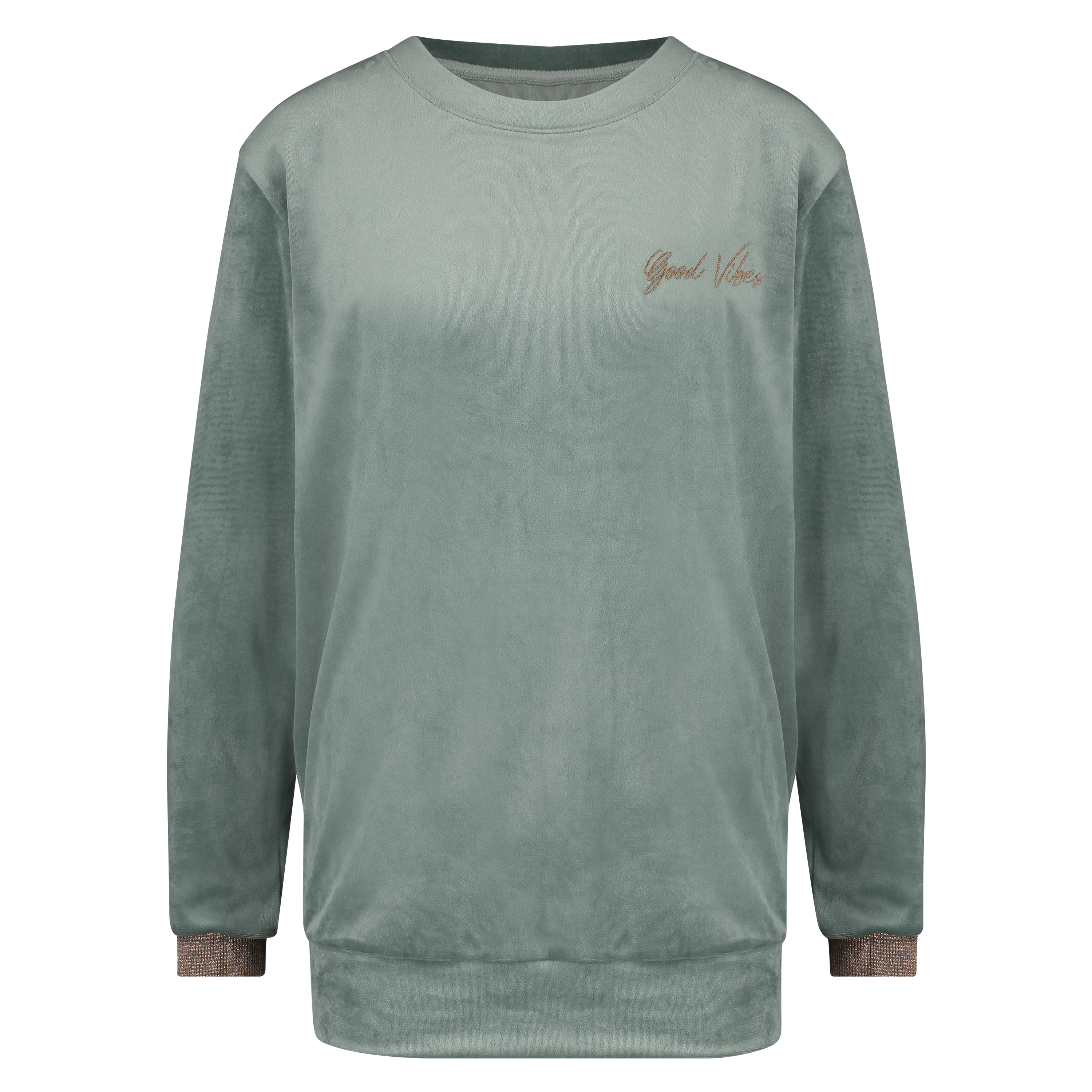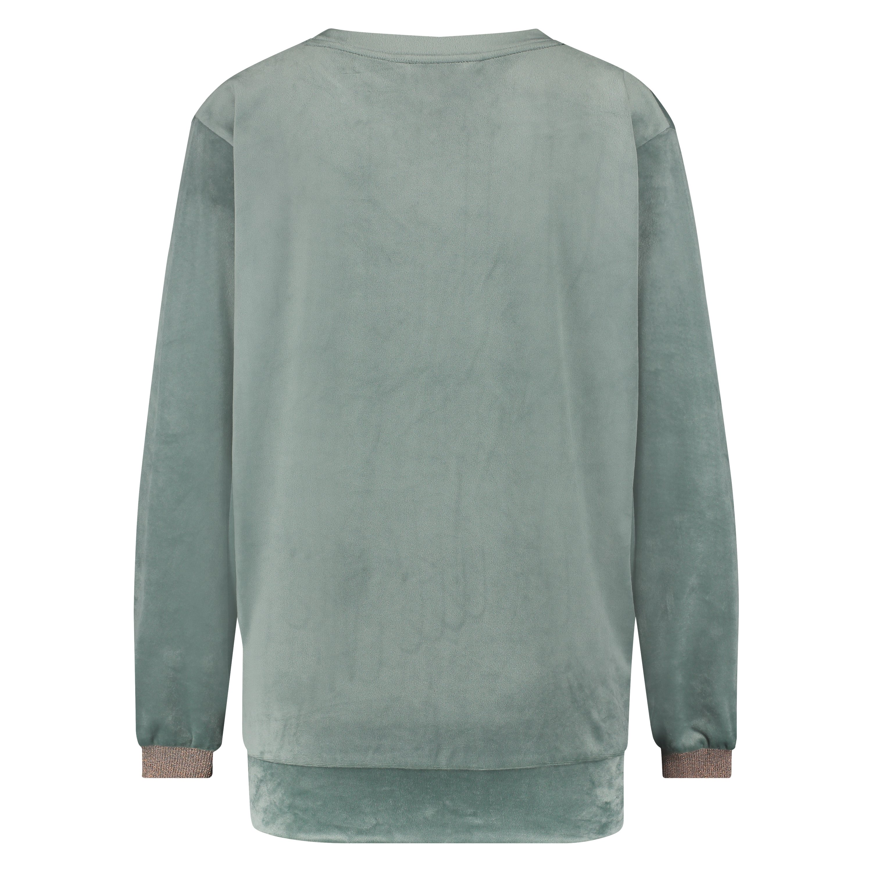 Get extra comfy in this top! The top is made from velours material, making it extra soft, and is finished with shiny lurex detailing on the sleeves. Combine with the matching trousers for a beautiful set!