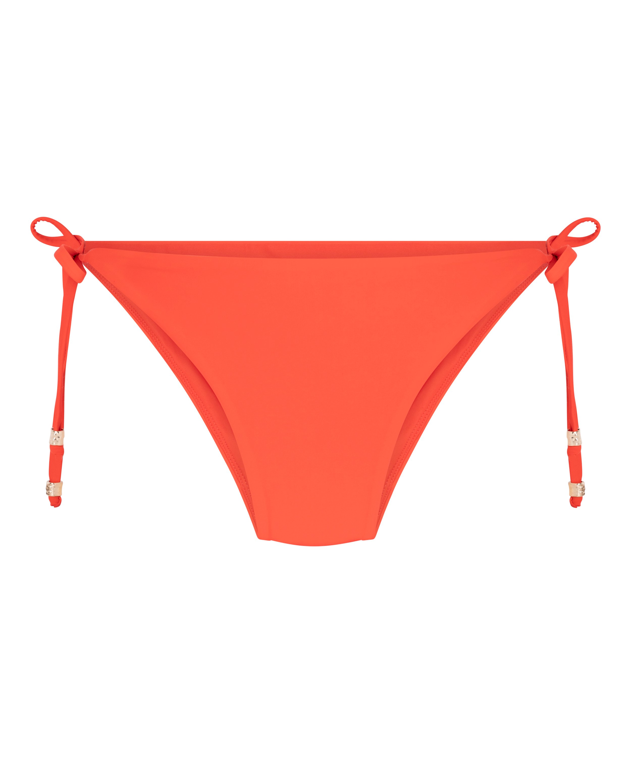 Make a statement at the beach with this playful and stylish cheeky bikini bottom. Featuring adjustable side tie closures adorned with chic stud accents, this bottom lets you customize the fit while adding a subtle edge to your swimwear look. Combine with the matching bikini top for a complete look.