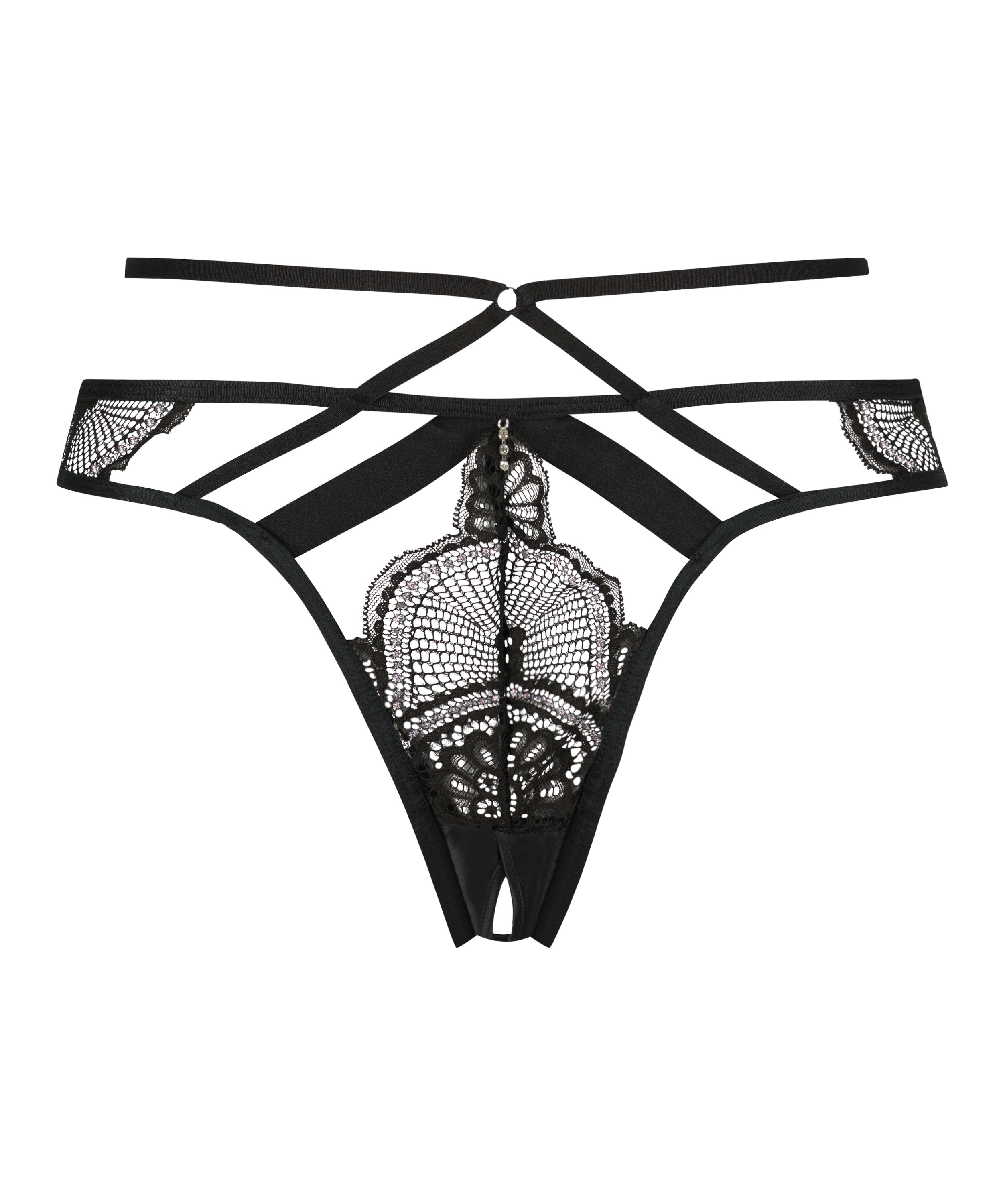 These Brazilian knickers will create a thrill, for sure! With beautiful lace and strappy detailing. And that's not forgetting the open crotch. Combine with the matching bra for a complete set. Part of our Private Collection.