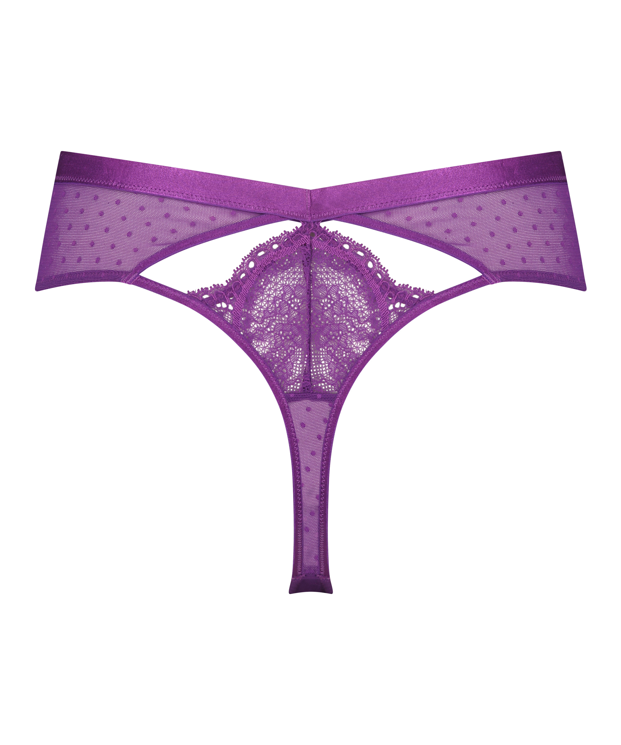 This thong is the perfect addition to your collection! It has lace, mesh and cut-out details. And the high-leg fit will show your legs off to perfection. Combine with the matching items for a complete look! Part of the Nyakim collection.