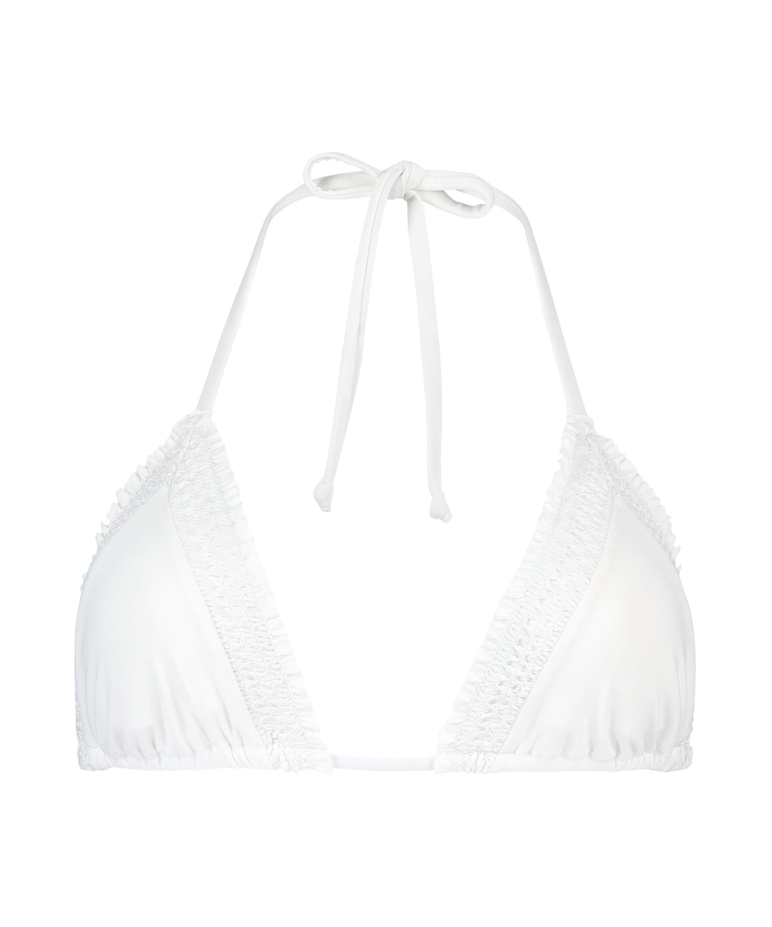 You will fall in love with this really beautiful triangle bikini top! You can tie the cords the way you want and the cups have attractive details. Combine with matching bottoms.