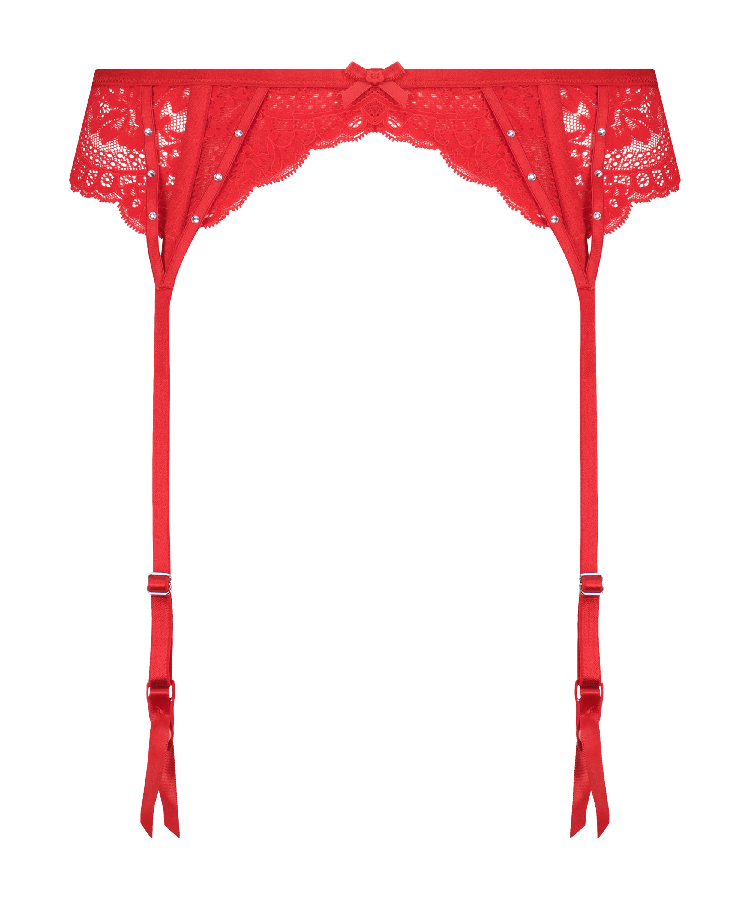 A beautifully suspender in a classic design made fun with its rhinestone decoration. Floral lace design along the front, closing with hook and eye fastenings in the back panel. The suspender belt sculpts the waist and flatters the body. Wear it with the Mariah bra, brief and matching hosiery for a gorgeous complete lingerie look.