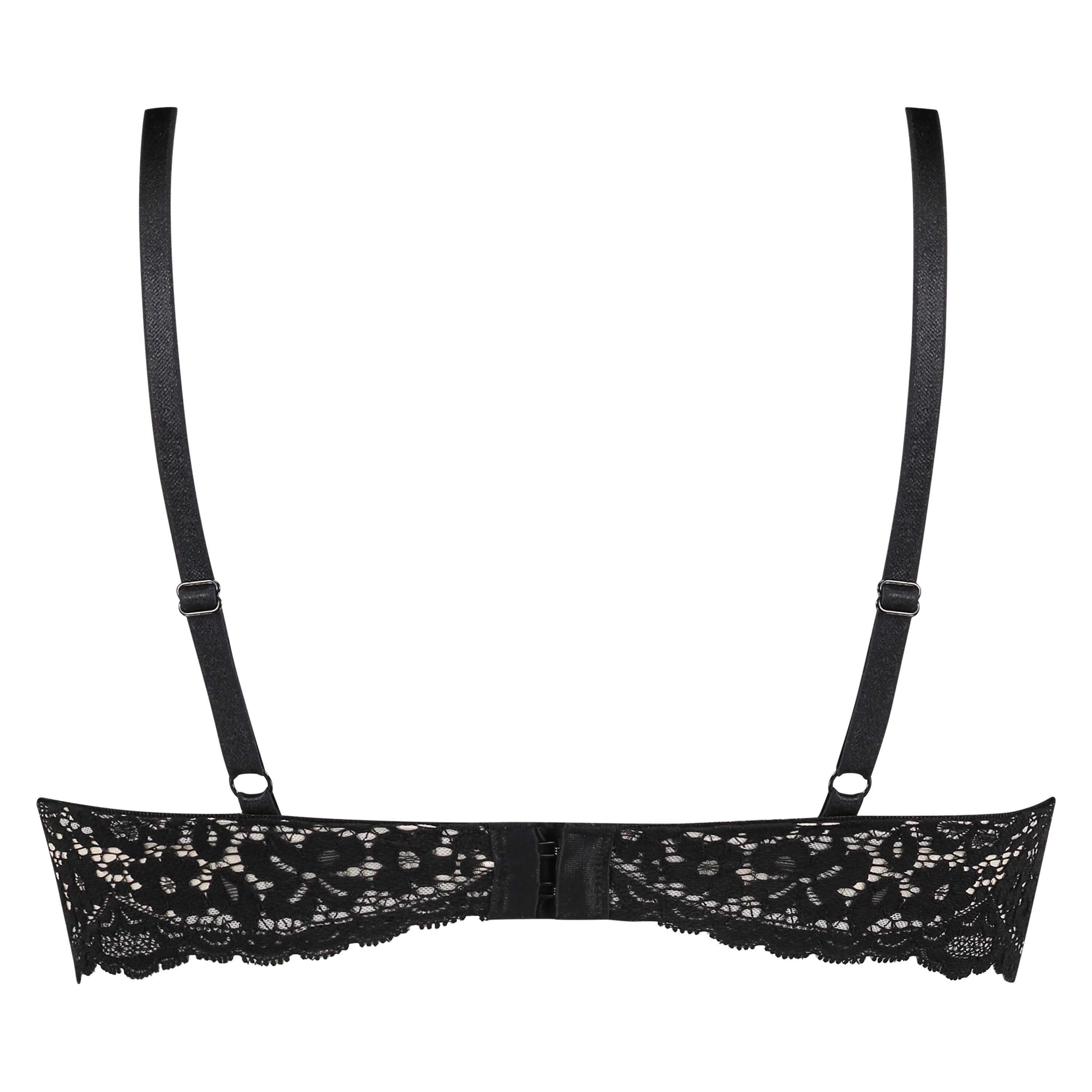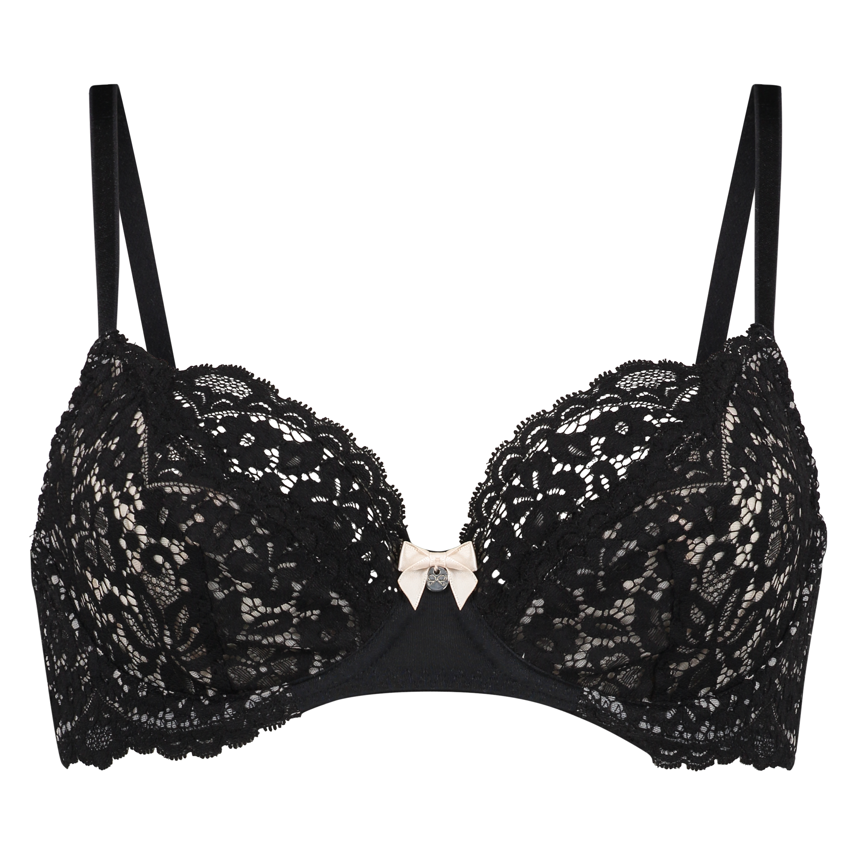 This super feminine bra is made completely from lace and is finished with a small bow between the cups.