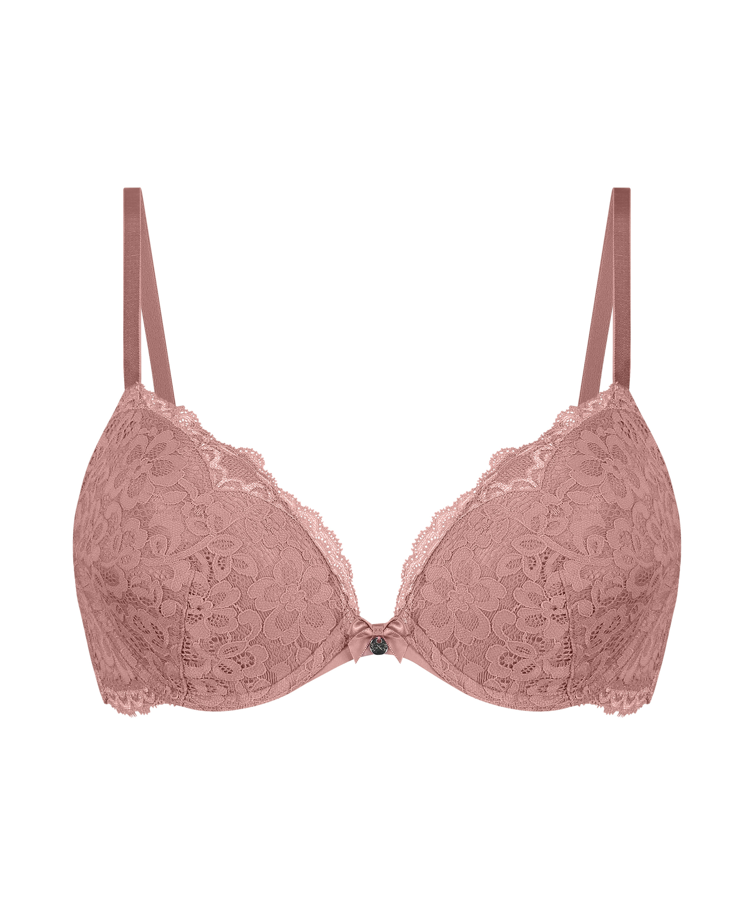 This bra is made completely from lace for a super sexy look. A small bow between the cups adds a finishing touch. Combine with the matching knickers for a complete look.