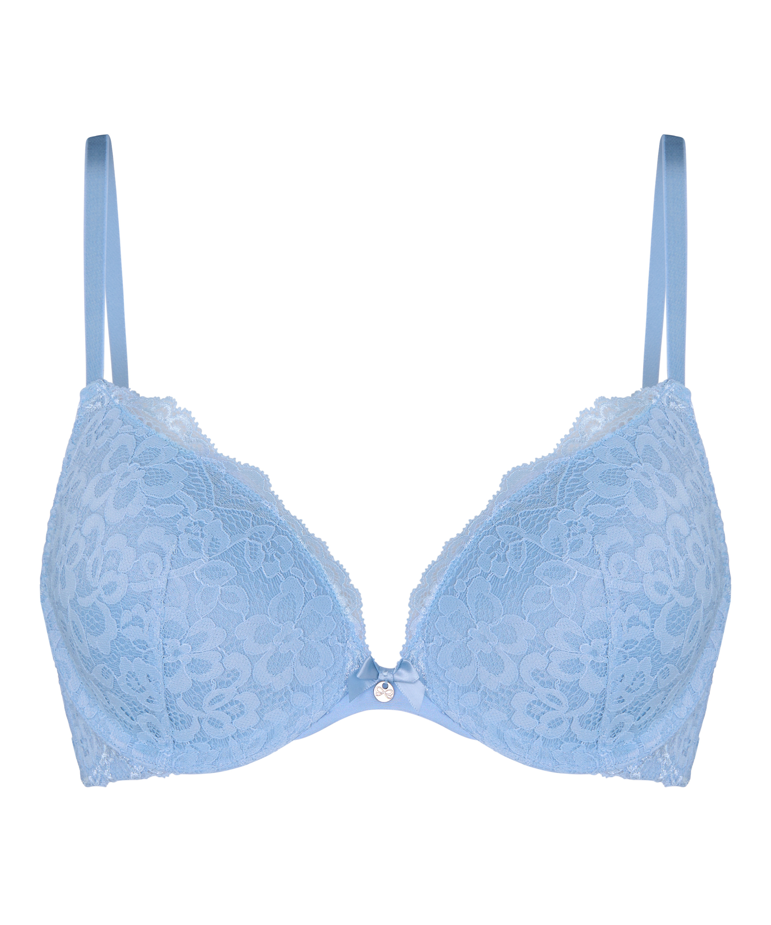 This bra is made completely from lace for a super sexy look. A small bow between the cups adds a finishing touch. Combine with the matching knickers for a complete look.