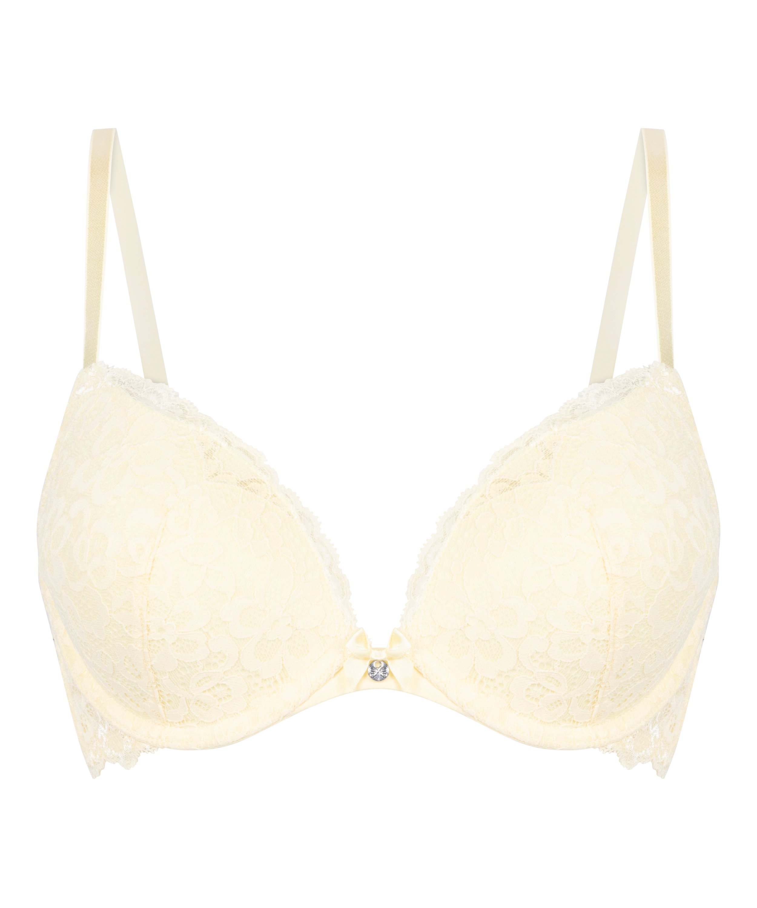 This bra is made completely from lace for a super sexy look. A small bow between the cups adds a finishing touch. Combine with the matching knickers for a complete look.