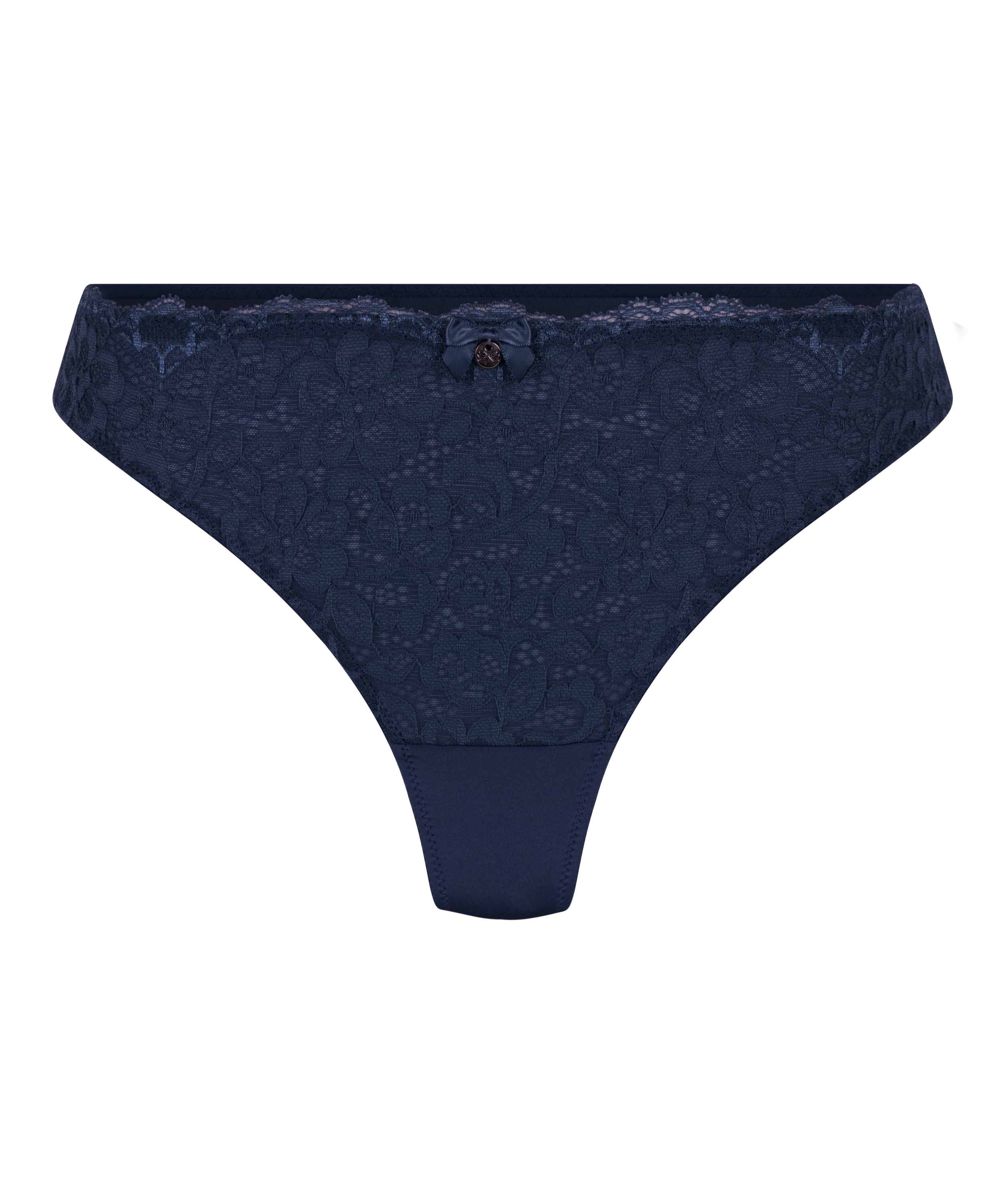 You'll look adorable in this thong! It features all-over lace with a floral pattern and is finished with a small bow in the middle. Combine with the matching bra for a complete look.